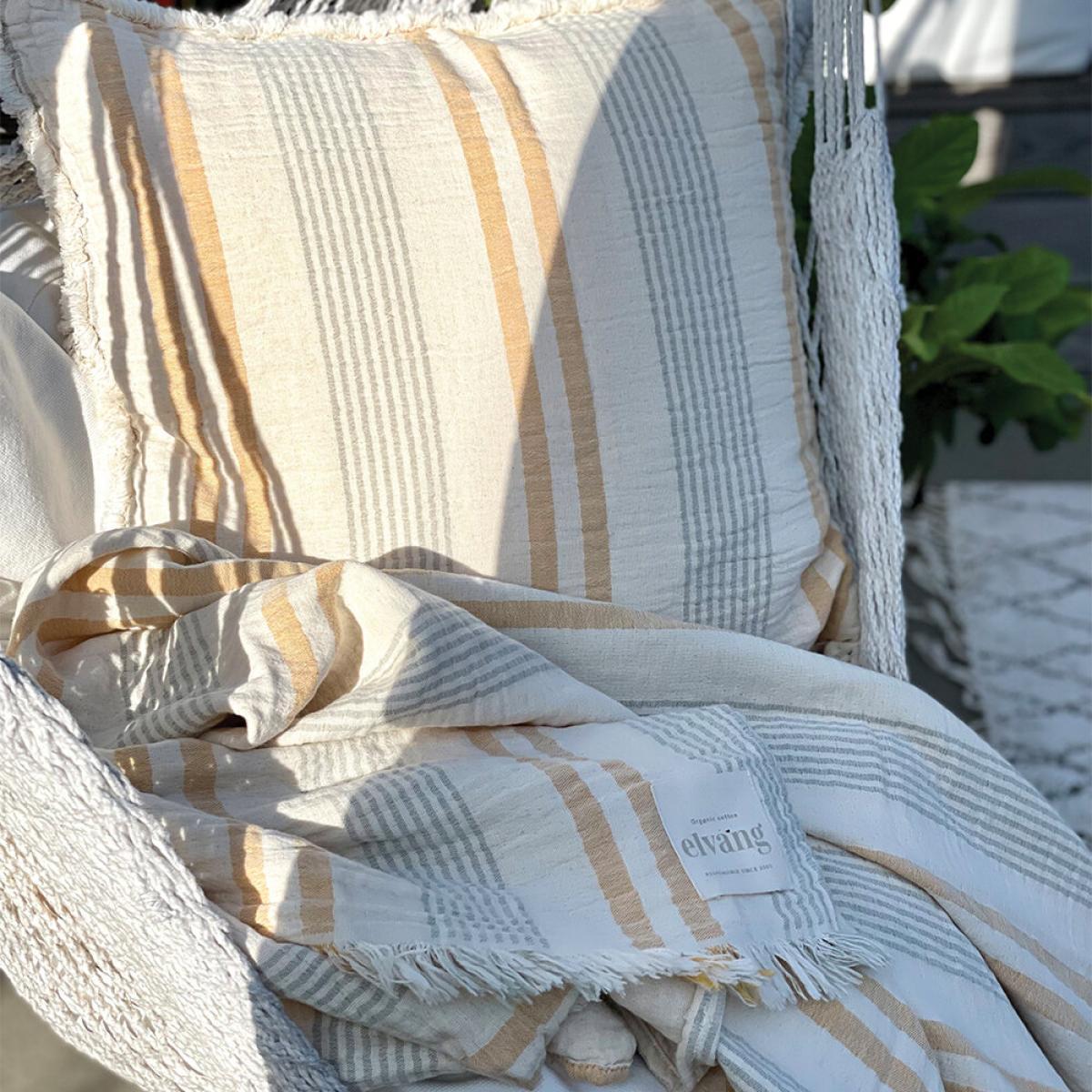 Bring laid-back style into the home with this Iris throw from Elvang Denmark. Crafted from 100% organic cotton, this beautiful throw features an array of stripes printed on an off-white linen.
