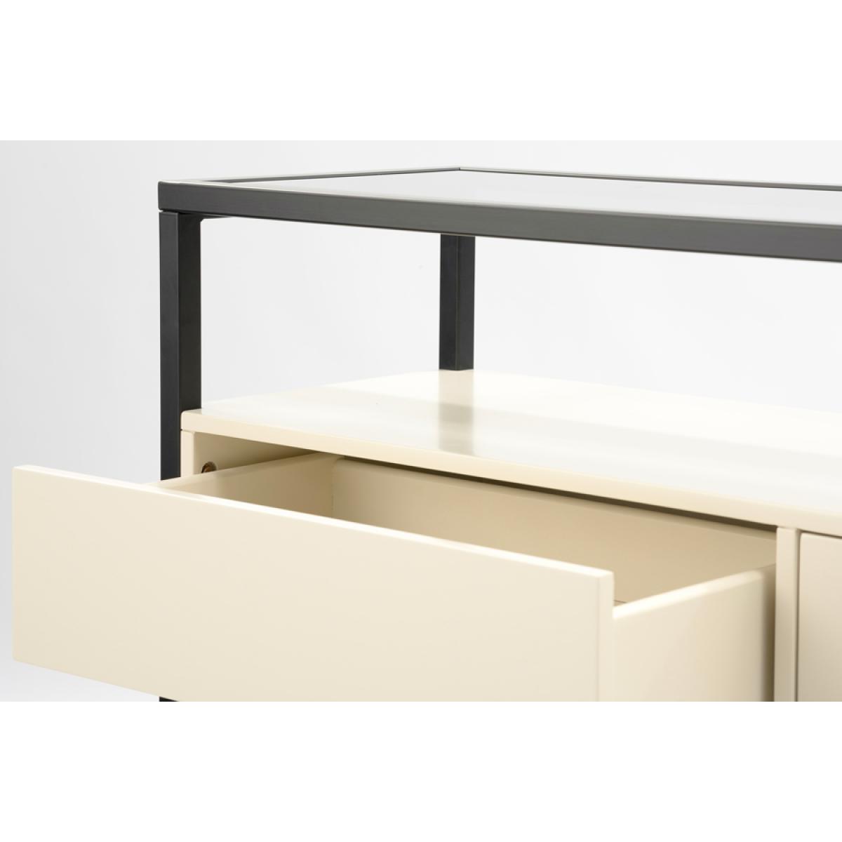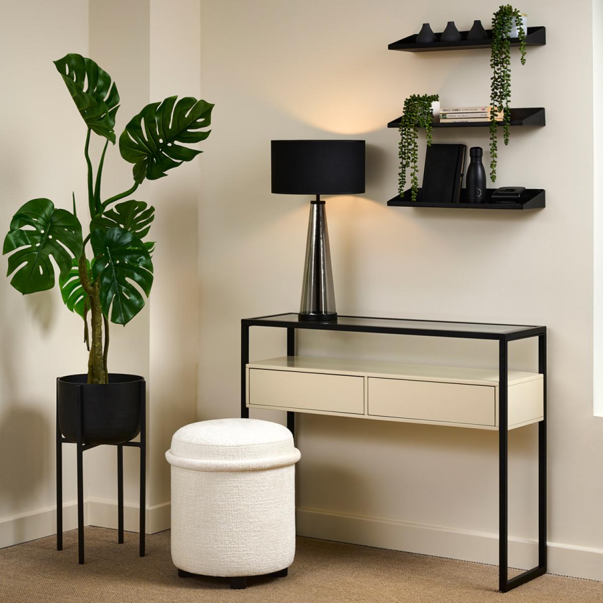 I’m a fan of the Elvi console for its slim metal frame and clear glass top, which make it feel light and unobtrusive in narrow hallways or behind a sofa. The pale drawer fronts add just enough warmth to balance the industrial lines, so it works equally well in Scandi-inspired schemes or pared-back urban lofts. For styling, keep the surface clutter-free: a low vase with a single stem, a slim table lamp and a neat stack of coffee-table books create height variation without overwhelming the slim profile. Tuck everyday essentials - keys, dog leads, notepads - into the drawers to maintain that clean look, and hang a narrow mirror above to bounce light back into the space.