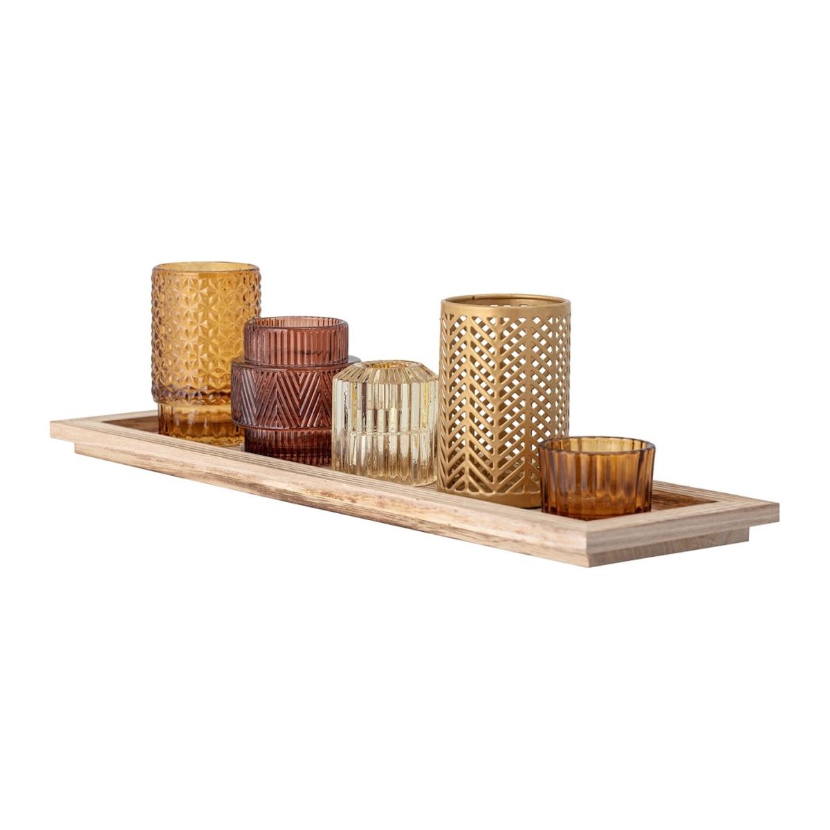Relax and unwind with these Elvina Assorted Brown Glass Votives from Bloomingville. Placed on an elegant tray, the six votives come in a range of shapes, sizes, and colours. Made from spray coloured glass, the brown shades add a warming tone.