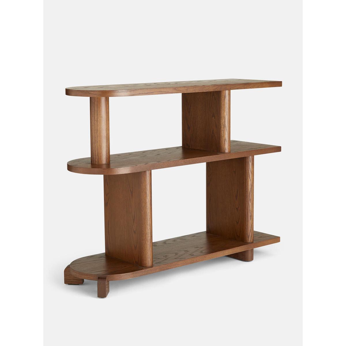Inspired by the furniture seen at 180 House, our Elwood free-standing oak shelving unit can stand alone to form a statement wall, or be paired with another unit to create a room partition. The varied heights allow room for both large and small-scale items, including books, candles, and glazed ceramic decor. Free-standing oak shelving unit Varied heights Rounded edges Pair two together to create a room divide Can be used to create a statement wall Inspired by 180 House