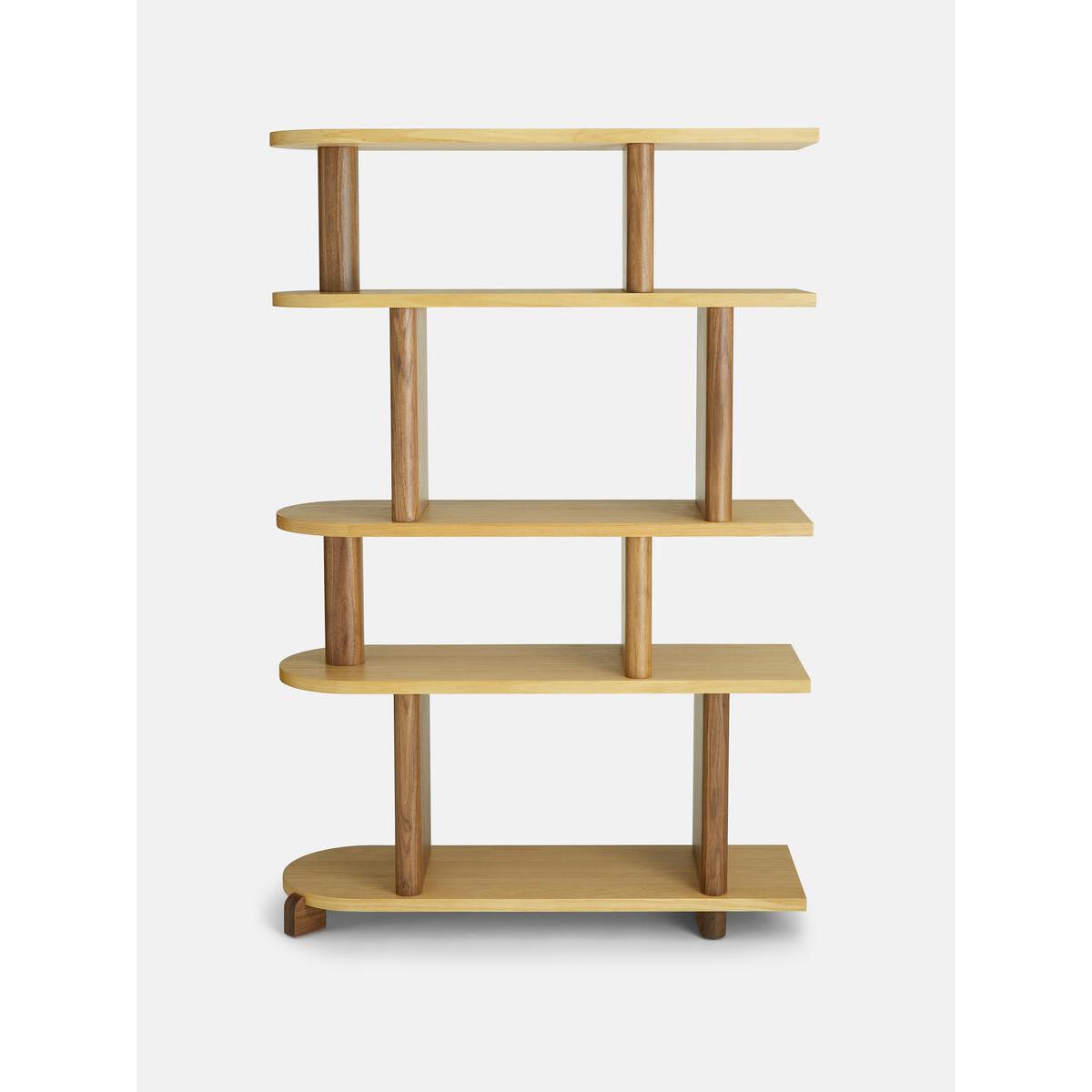 Inspired by the furniture seen at 180 House, our Elwood free-standing oak shelving unit can stand alone to form a statement wall, or be paired with another unit to create a room partition. The varied heights allow room for both large and small-scale items, including books, candles, and glazed ceramic decor. Free-standing oak shelving unit Two Tone Varied heights Rounded edges Pair two together to create a room divide Can be used to create a statement wall Inspired by 180 House