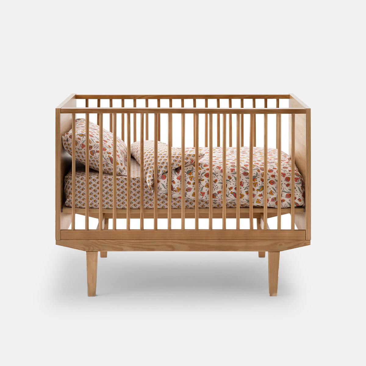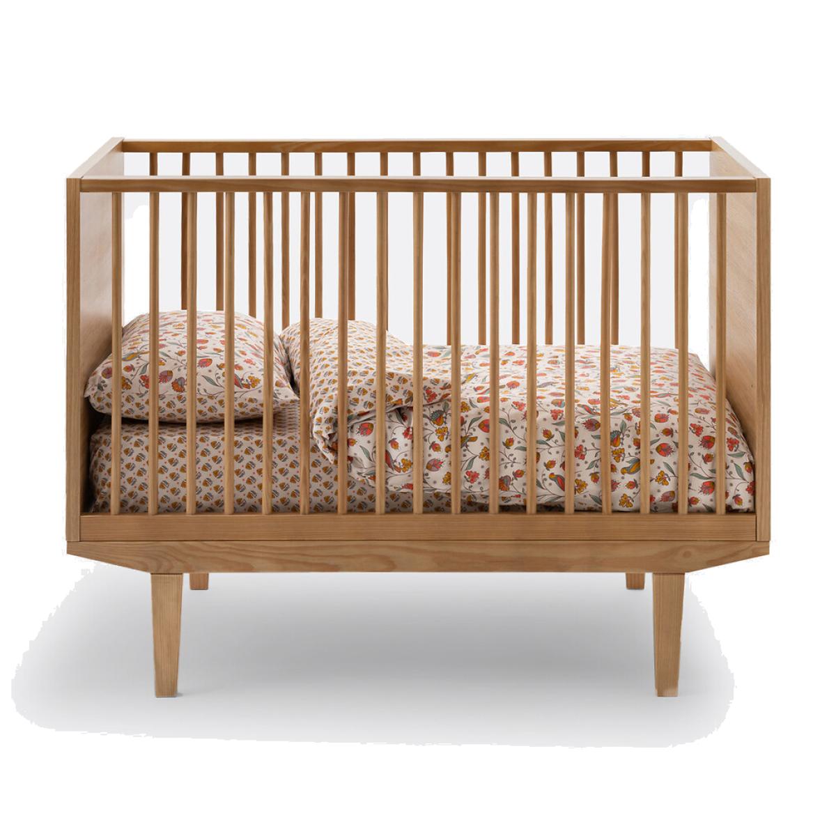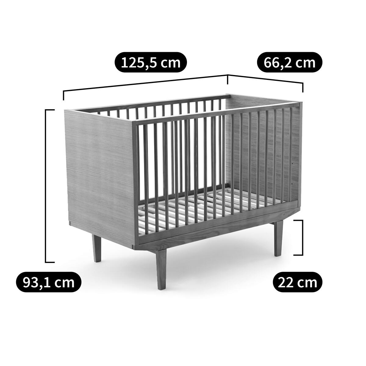 The Elyo vintage crib. You'll love the retro style of this crib. It will work perfectly in your child's room. Made in Europe. Product Details • Solid pine slatted base, height adjustable, included • Cot size 60 x 120cm • Solid oak stained pine and oak veneered MDF with PU varnish finish. Dimensions • Length: 125.5cm • Height: 93.1cm • Width: 66.2cm • Height of legs: 22cm • Weight: 28kgDelivery:. This crib requires self-assembly. Available for home delivery. • Made in Europe. Dimensions and weight of parcel • 1 parcel • L130 x H98 x D14cm. 29kg