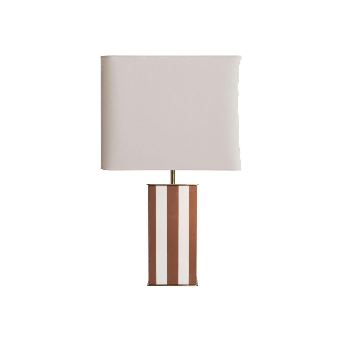 Very chic, this lamp with its majestic dimensions is inspired by the atmosphere of Parisian salons. White linen, brass and two-tone lacquer work together wonderfully. Dressed in elegant coloured stripes, the base is made of lacquered solid wood. With its high-gloss finish, the lacquered wood looks like ceramic. The Elysée lamp is embellished with brass details which reinforce its sophisticated character. Parisian brand Red Edition invites you to rediscover a French way of life with modern design codes. Its recipe: a Parisian signature, clean lines and a requirement for noble materials.