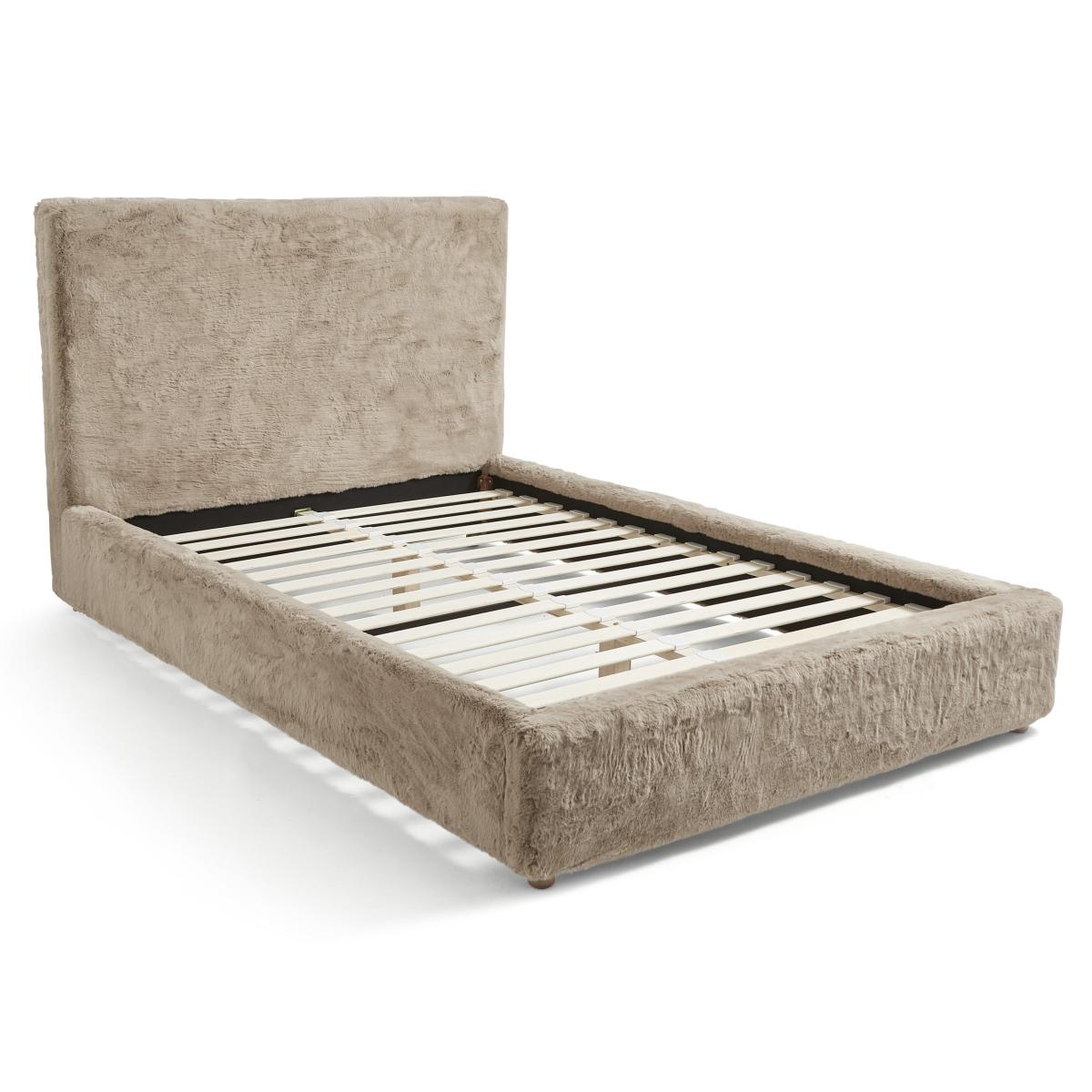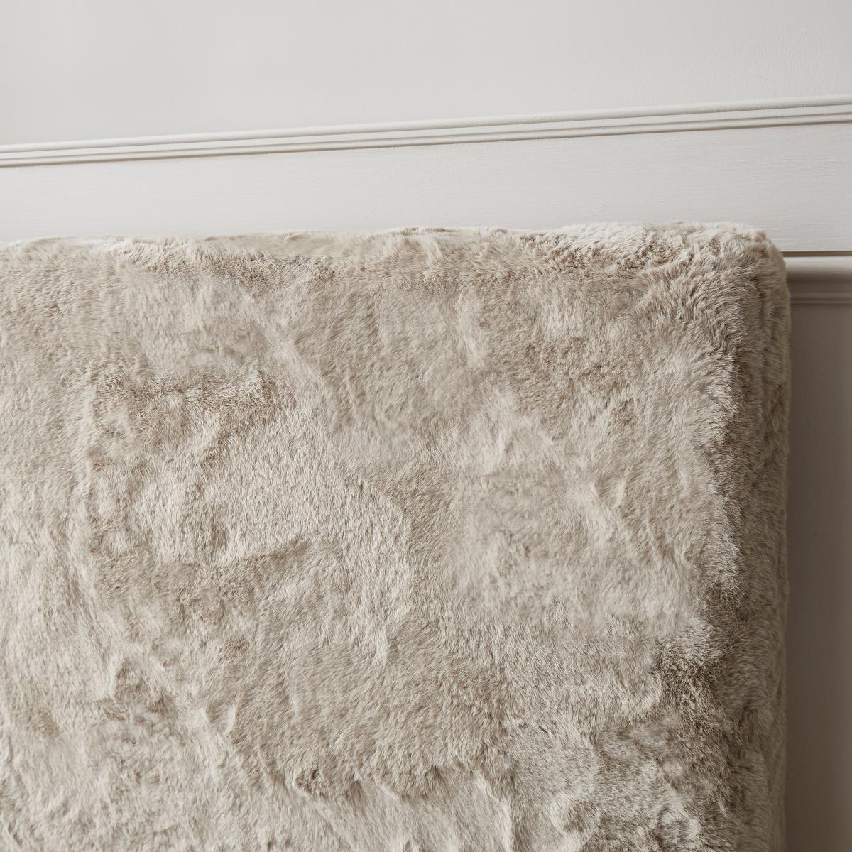 * Faux Fur upholstery* Light wood legs* Slatted base* Easy assembly This stunning bed frame features a low foot end and a slatted base, combining opulence with practicality. The faux fur fabric provides a soft, inviting texture that enhances the cozy ambience of your sleeping space, while the low foot end design ensures an open, airy feel. The slatted base offers excellent support and durability, promoting a comfortable night's sleep. Designed to seamlessly blend with various interior decor styles, the Elysia Bed adds a touch of glamour and sophistication to any bedroom.
