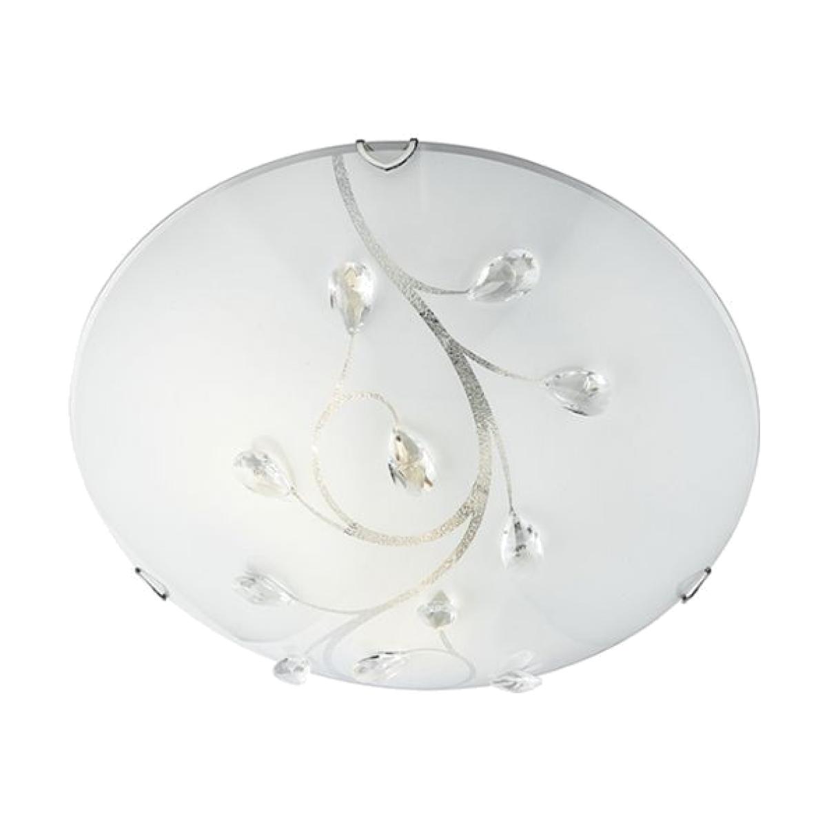 This flush fit single light modern ceiling light has a beautifully frosted decorative glass shade that is embellished with crystal accents for a truly elegant and beautiful finish. This modern ceiling light will look great in bathrooms, but will also look great in other rooms of the house, making a great marker light in hallways, for walk in wardrobes or storage cupboards where lighting is required, or as a sleek yet elegant contemporary bedroom light. This ceiling light is ideal for rooms where you have a low ceiling hight.