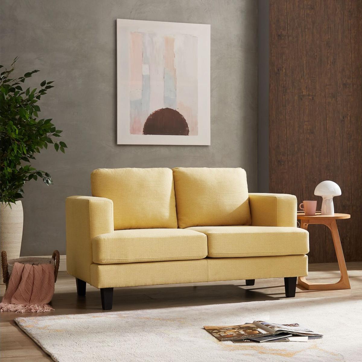 Introducing our Dale sofa range. Dale will impress your visitors and make your home feel warm and inviting. Dale is available in a cosy two-seater and a generous three-seater options, so no matter the size of your home or family we will have the perfect seating choice for you. Dale boasts clean lines and a boxy style, the armrests are large, and it stands on black tapered legs. Dale is available in a natural, dark grey, pale blue and mustard linen fabric. Linen is a strong and lightweight fabric but has a great ability to conduct heat. This sofa is a large item, therefore we require you to ensure it will fit through any access doors and walkways up to and within your property. Minimum door width of 80cm. All sizes are approximate, please allow for small variations.