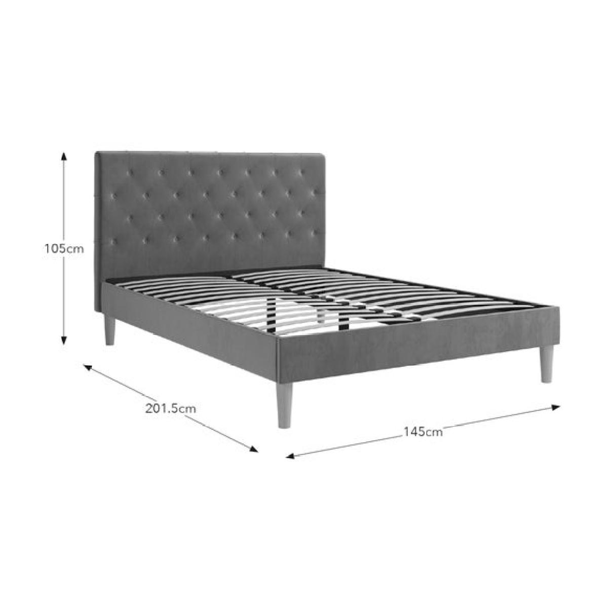 * Plush velvet upholstery * Deep buttoned headboard design * Sprung slat base for added support * Available in multiple colours Designed to bring comfort and texture to your bedroom, the Emberly Velvet Bed Frame features a deep buttoned headboard and a soft velvet finish. Its bold shape adds structure while keeping the look relaxed. The sprung slat base offers support and helps your mattress stay in good condition. Available in a range of colours to suit different styles and spaces. Built with a sturdy frame and smooth lines for a neat finish.