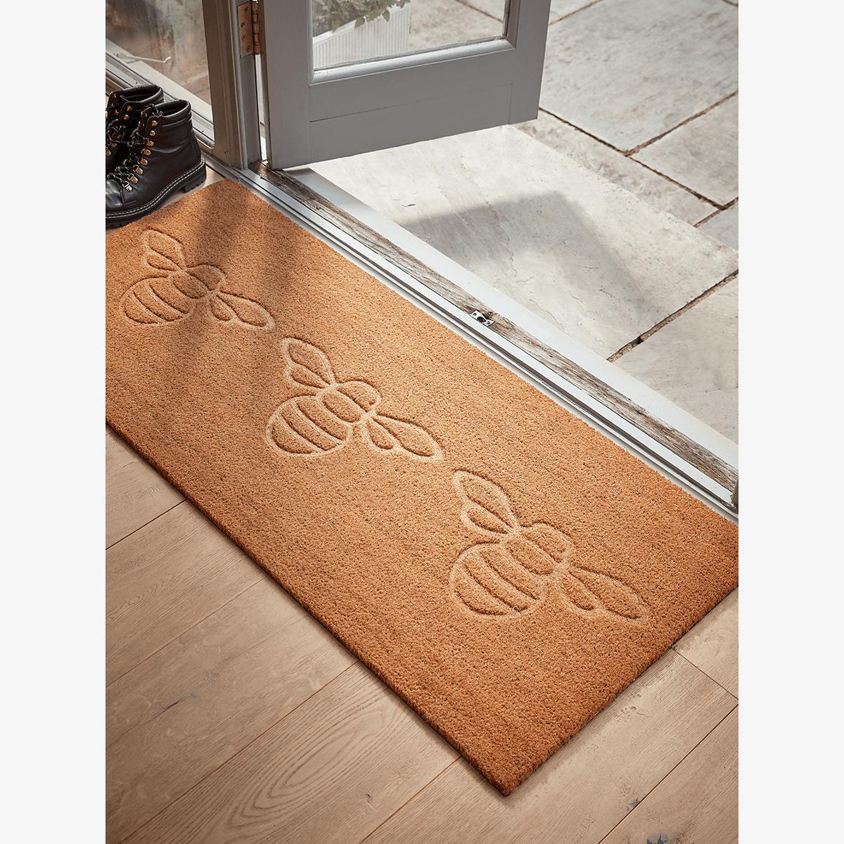 Embossed with a trio of bumble bees, this double width doormat will smarten up your hallway and make light work of muddy boots and shoes. Made from hard-wearing coir, with a PVC backing to prevent slipping, it makes a great first impression for a stylish home.