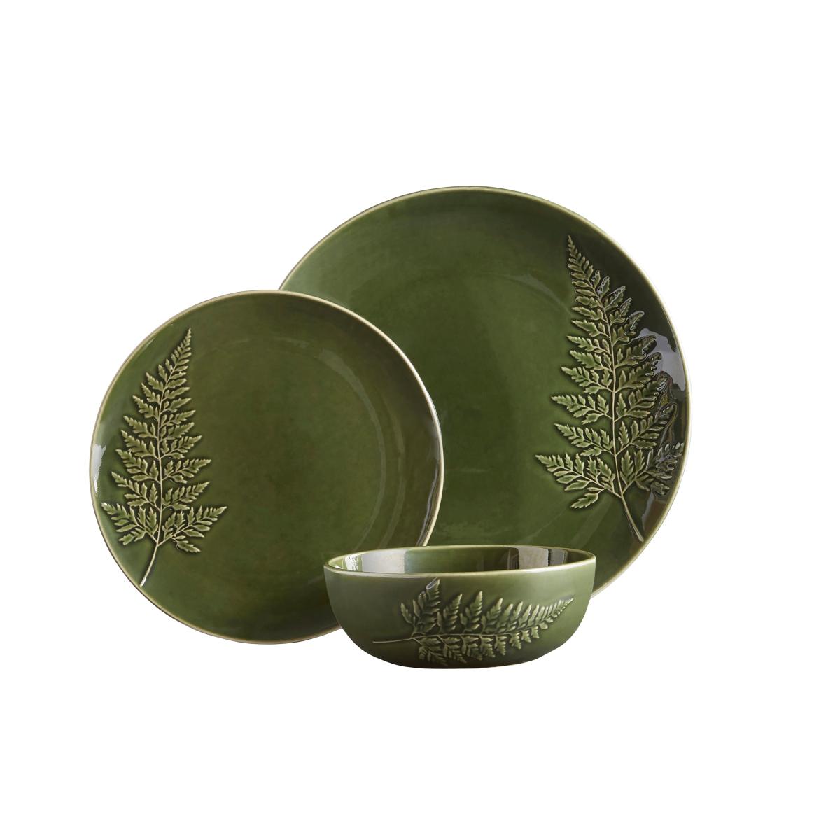 Embossed Fern 12 Piece Dinner Set Fern (Green)
