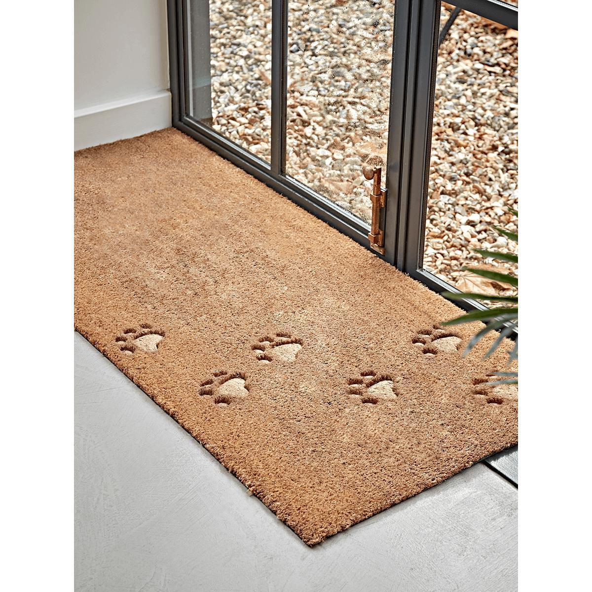 Eliminate mess and keep muddy footprints at bay with our double Embossed Paw Print Doormat, perfect for placing inside French or bi-fold doorways. Each mat is made from hardwearing natural coconut fibres and has a sturdy rubber underside.