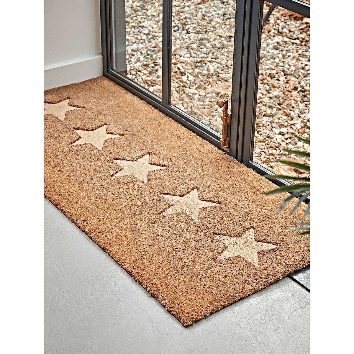I’m a fan of this double-length star mat for its hard-wearing coir fibres and subtle embossed pattern - it brings in texture without shouting for attention. It works particularly well in coastal or Scandi-inspired hallways, as well as farmhouse-style porches where natural tones and relaxed textures rule. For styling, pair it with simple terracotta pots or a woven umbrella stand to carry the natural palette through your entrance. Keep the surrounding colour scheme pared back - whitewashed walls or pale greys - so the mat’s star detail remains a neat focal point rather than competing with bolder prints.