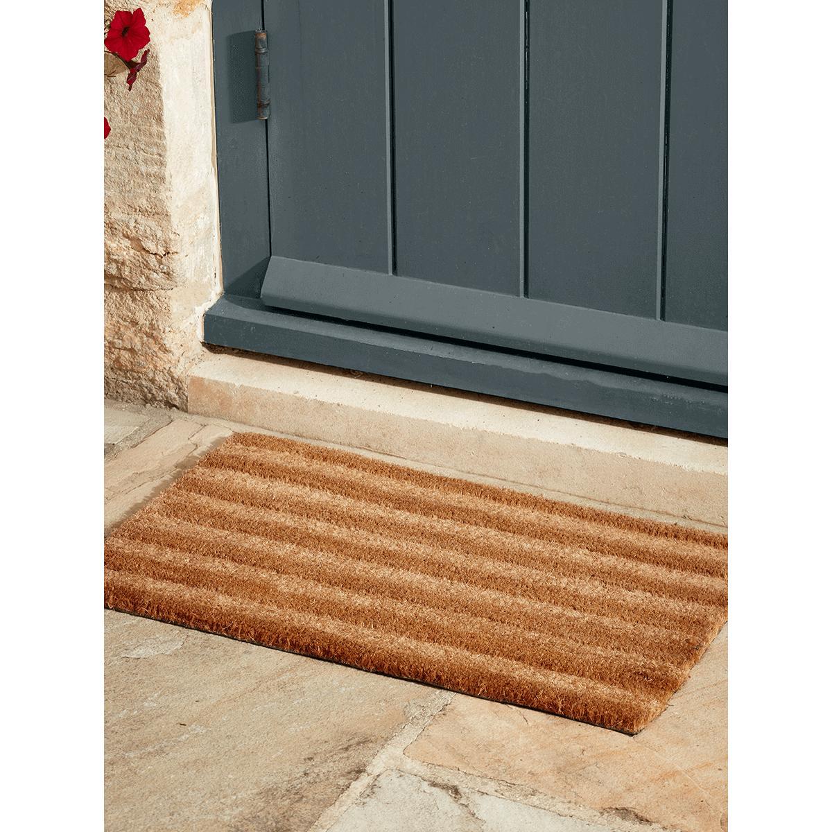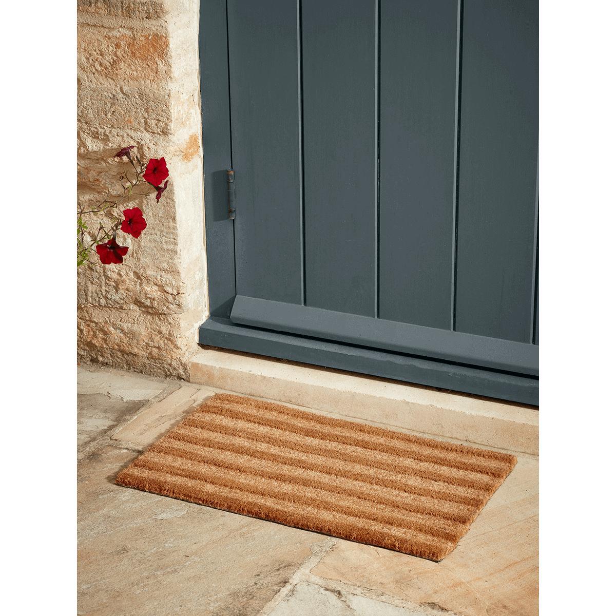 Keep muddy footprints at bay with our stylish stripe design doormat, and create a lovely impression at the door at the same time!. Ideal for by the backdoor, front door or utility room, our hardwearing, natural coir doormat features a stripe embossed in its surface and comes with a vinyl backing.