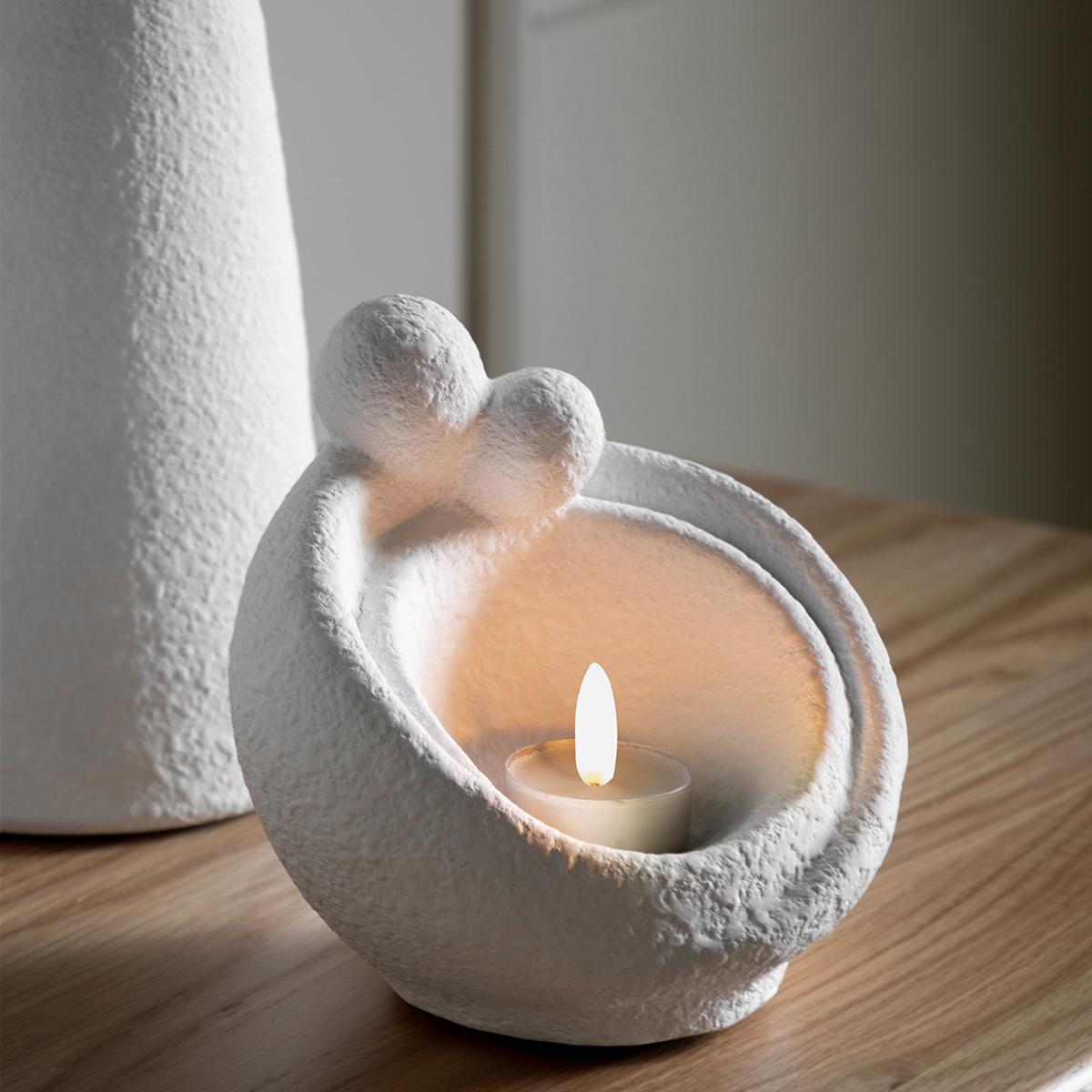 Illuminate your surroundings with a warm, inviting glow as the Embrace candleholder gracefully cradles a tealight in the centre. Finished in a matte white, this candleholder will add a touch of elegance to any space.