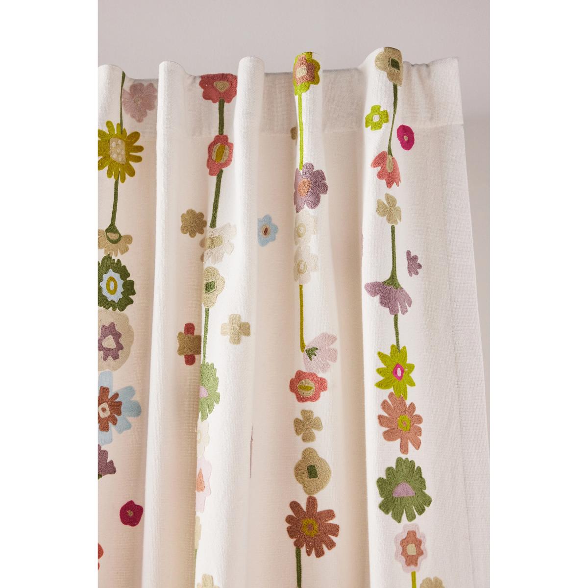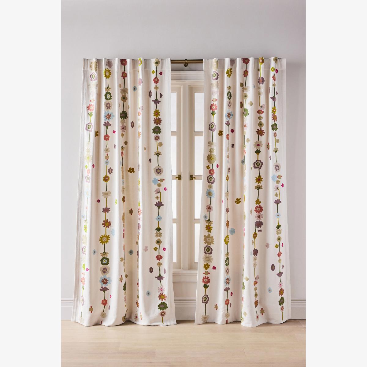 I love this embroidered cotton curtain for its cheerful, handcrafted feel and subtle pop of colour. It works well in a variety of interiors-from boho and eclectic spaces to more pared-back or modern schemes that could benefit from a lively, artistic touch. The floral embroidery adds texture and visual interest without overwhelming the space, making it versatile for both formal and relaxed settings. For styling tips, consider pairing these curtains with minimalist furniture and neutral walls to let the embroidery stand out, or contrast them with more vibrant accessories for a playful, layered look. They also work well in bedrooms or living rooms where you want to add a cosy, inviting atmosphere with a hint of whimsy.