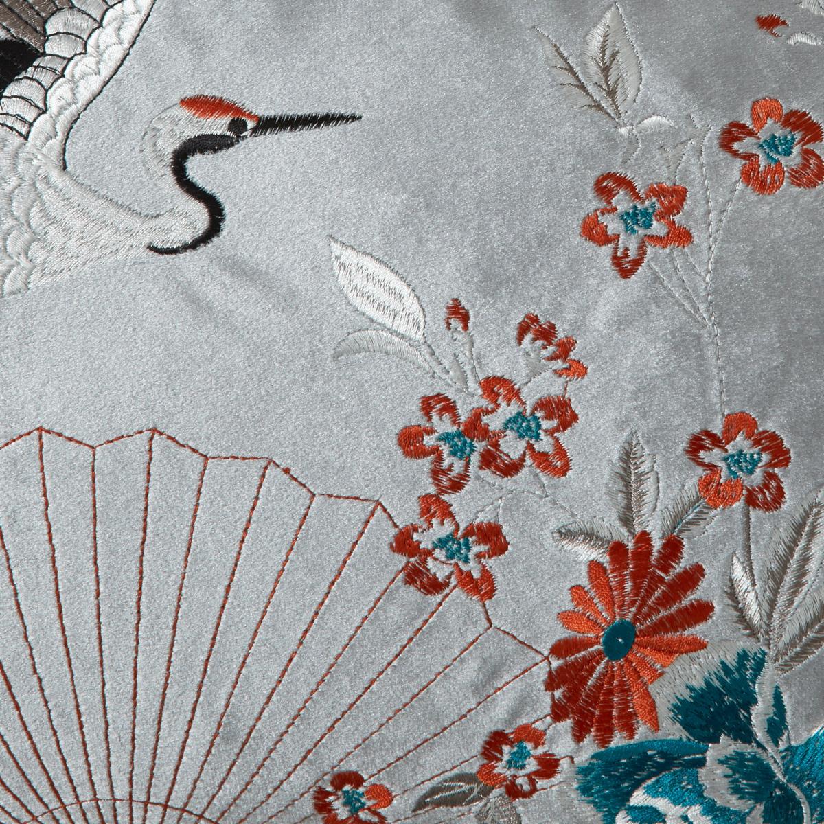 Embroidered Crane Silver Cushion Cover Silver