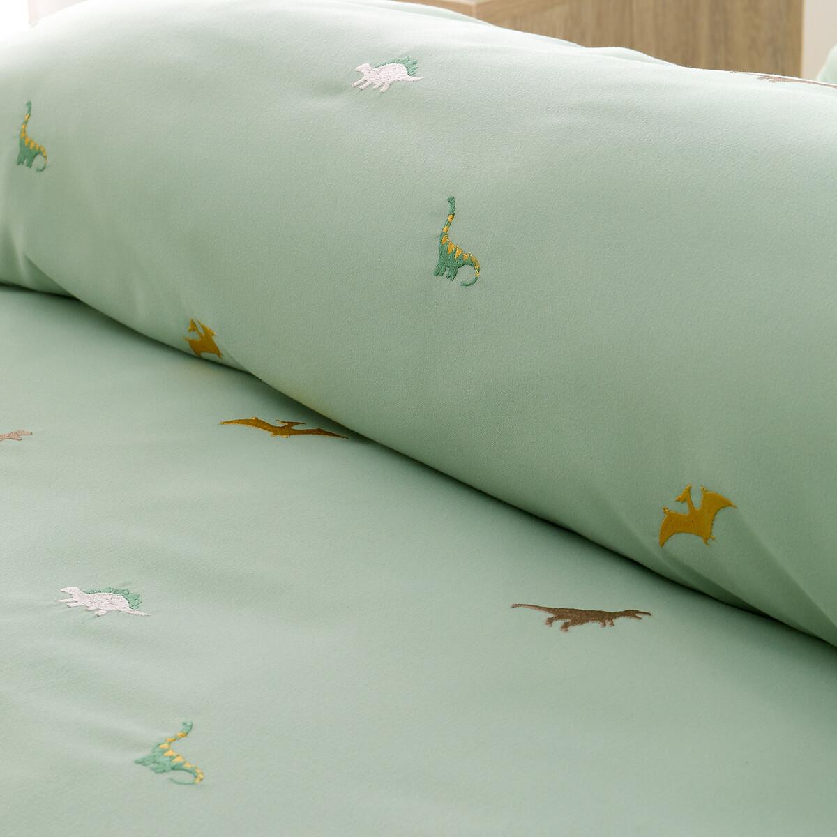 Unleash their imagination and create a Jurassic wonderland in their bedroom with our ditsy dinosaur bedding Set. An earthy green base is dotted with adorable ditsy dinosaur, The excitement of discovering these charming little creatures will spark their imagination and transport them back to a time when dinosaurs roamed the Earth. Created from a soft and comfortable microfibre with a gentle touch on the skin for a relaxed sleep. Made to quality and human-ecological safety standards, in accordance with MADE IN GREEN by OEKO-TEX®.100% Polyester. Sizes available: -135x200cm (Single)-200x200cm (Double)-220x230cm (King)-220x260cm (Super King)This product will be dispatched by one of our trusted suppliers. You’ll be contacted by their selected courier about your delivery. TURNE01
