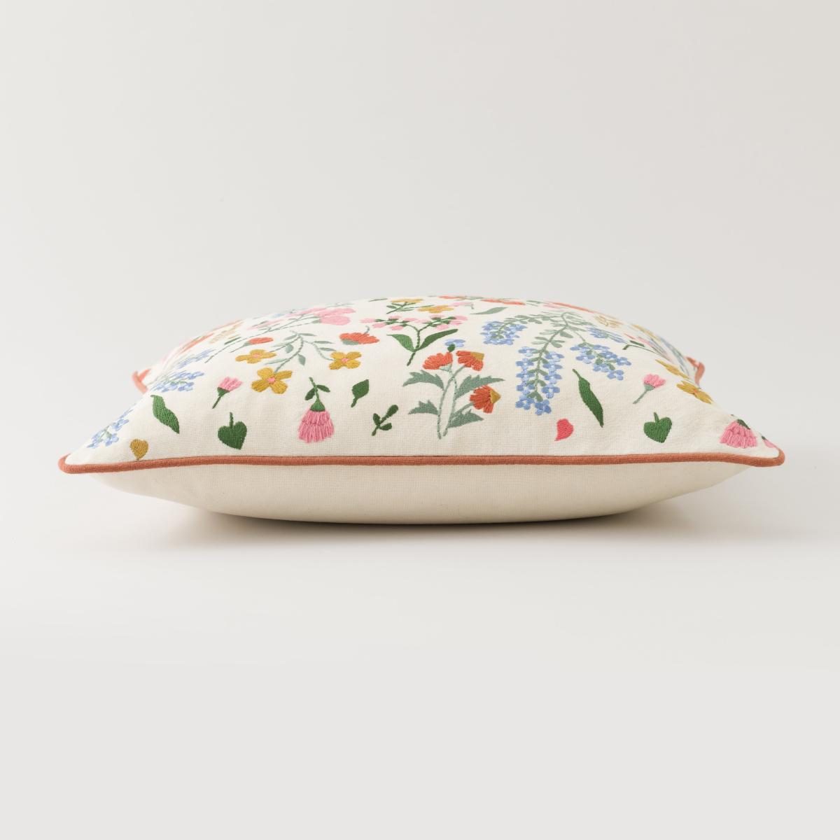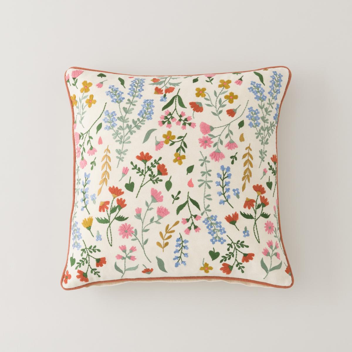 * Hand-crafted floral embroidery* Coordinating piped edges* Plump filling Bring a touch of bohemian chic to your home with our Embroidered Ditsy Floral Cushion! Featuring a loose scattering of beautifully hand-embroidered florals and coordinating piped edges, this cushion is the perfect accent piece for any free-spirited decor. Made with a plush filling for maximum comfort, it's also easy to clean thanks to its removable cover