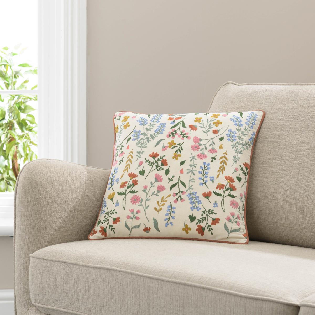 Embroidered Ditsy Floral Cushion MultiColoured