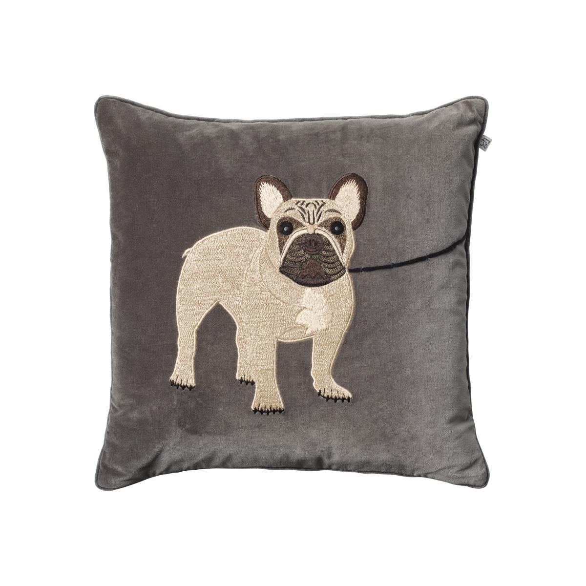 Embroidered French Bull Dog cushion cover 50x50 cm Grey