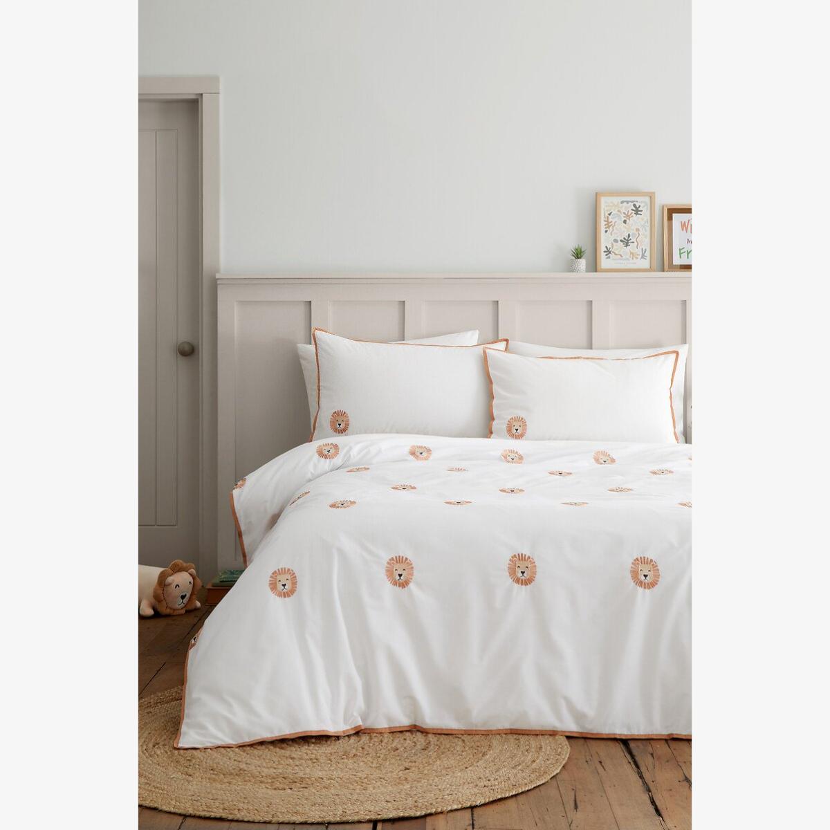 Roar into bedtime, where sleep time becomes a wild adventure! This lion-tastic design is bold, brave, and full of character. The contrasting piped detailing adds an extra pop of fun. Bedtime just got a whole lot wilder – let your little one's dream of jungle escapades and roaring good times. Created from easy-care recycled polyester and soft responsibly sourced cotton, perfectly blended for everyday use. Catherine Lansfield is renowned for style and quality - designed and developed in Great Britain. Made to quality and human-ecological safety standards, in accordance with MADE IN GREEN by OEKO-TEX®.Better Cotton- By choosing our cotton product, you're supporting Catherine Lansfield's investment in Better Cotton's mission. Better Cotton is sourced via a chain of custody model called mass balance, this means that this product may not contain Better Cotton, however Better Cotton Farmers benefit from the demand for Better Cotton in equivalent volumes to those used. Learn more at //bettercotton.org/learnmore52% POLYESTER 48% COTTONSizes Available: - 135x200 cm - 200x200 cm. This product will be dispatched by one of our trusted suppliers. You’ll be contacted by their selected courier about your delivery.
