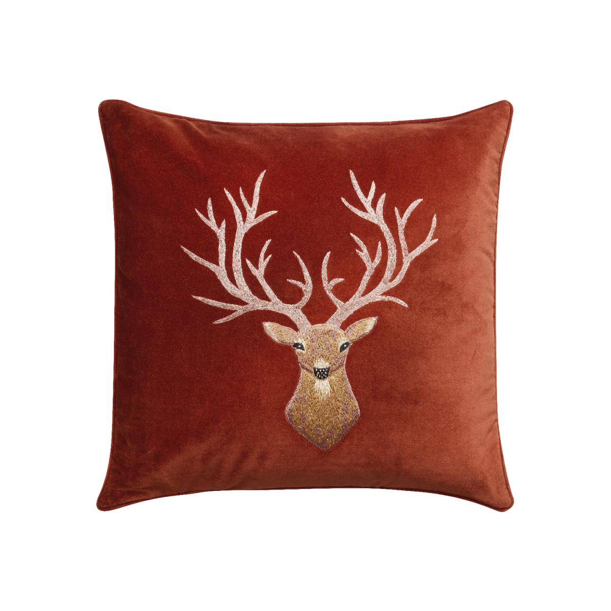 Embroidered Reindeer cushion cover 50x50 cm rust