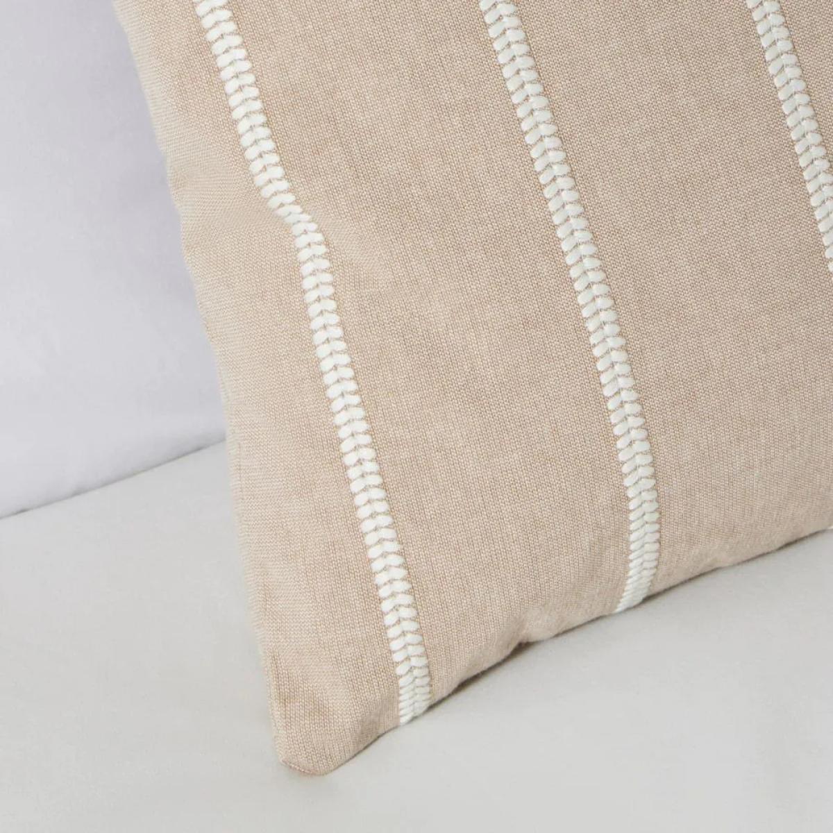 Elevate your soft furnishings with the Embroidered Stripe Cushion in Natural, designed for understated elegance. Its embroidered stripes add subtle texture and visual interest, while the neutral tone makes it easy to pair with patterned or plain fabrics. Compact yet impactful, this cushion is perfect for styling on sofas or beds.