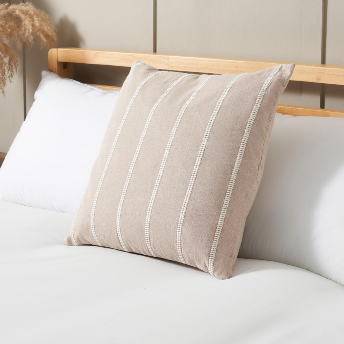 I love this cushion for its understated elegance and versatility. The striped design adds subtle texture without overwhelming a space, making it a great choice for a neutral or minimal interior. It works particularly well in living rooms or bedrooms that feature soft, natural tones, creating a calm and cosy vibe. Practical styling tips include pairing it with other textured cushions in complementary shades or using it to add a touch of interest to plain throws or armchairs. Its neutral colour also means it can easily blend into both contemporary and classic interiors, making it a smart and adaptable addition to any home.