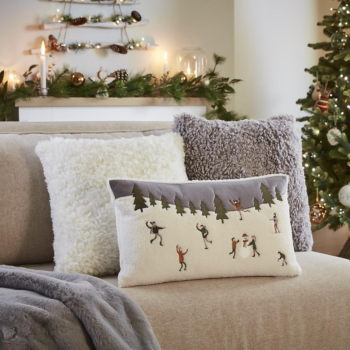A charming winter wonderland scene embroidered on a soft boucle background. This cosy cushion will add a festive feel to your sofa.