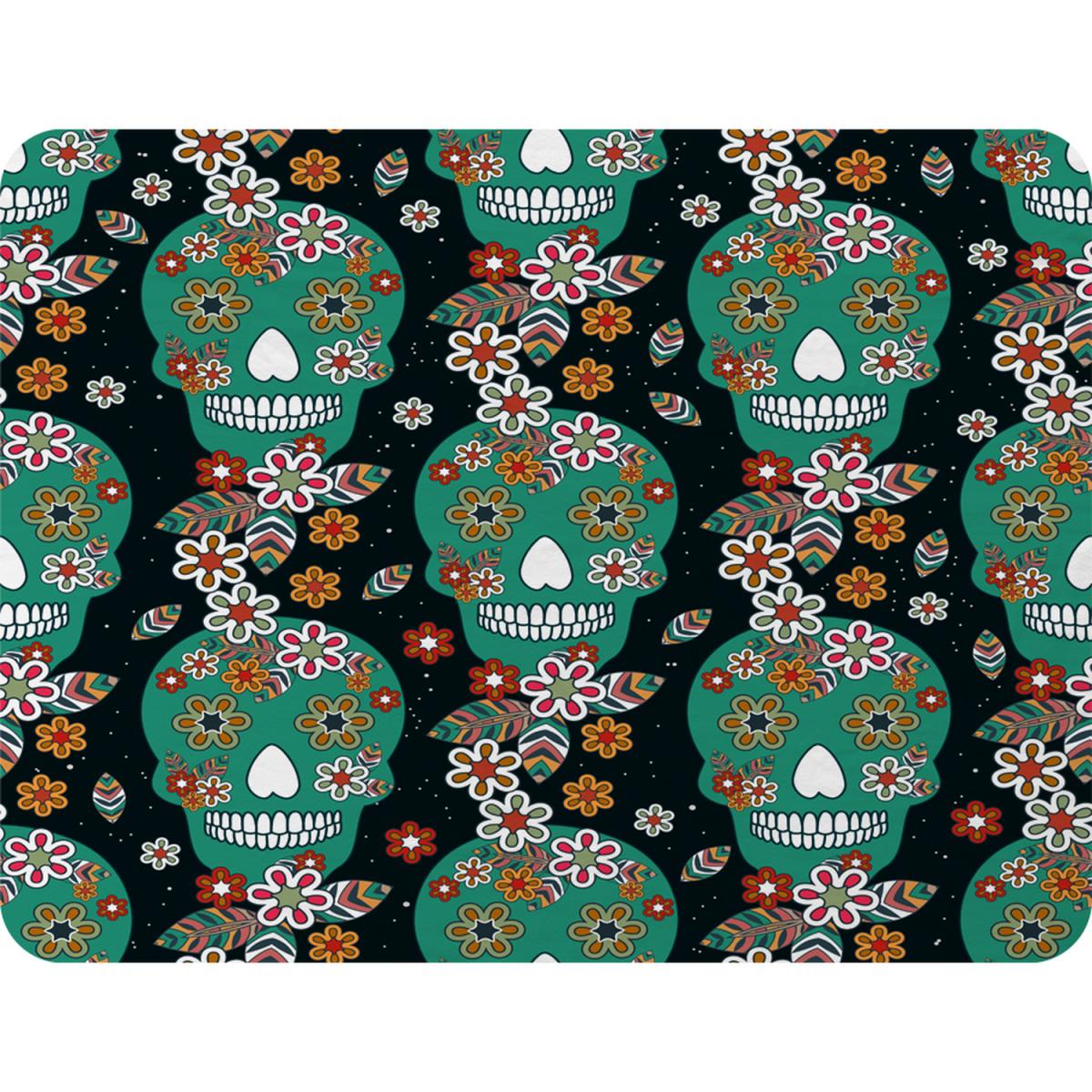 Embroidery Colorful Simplified Ethnic Flowers And Skull Pattern Blanket - Green