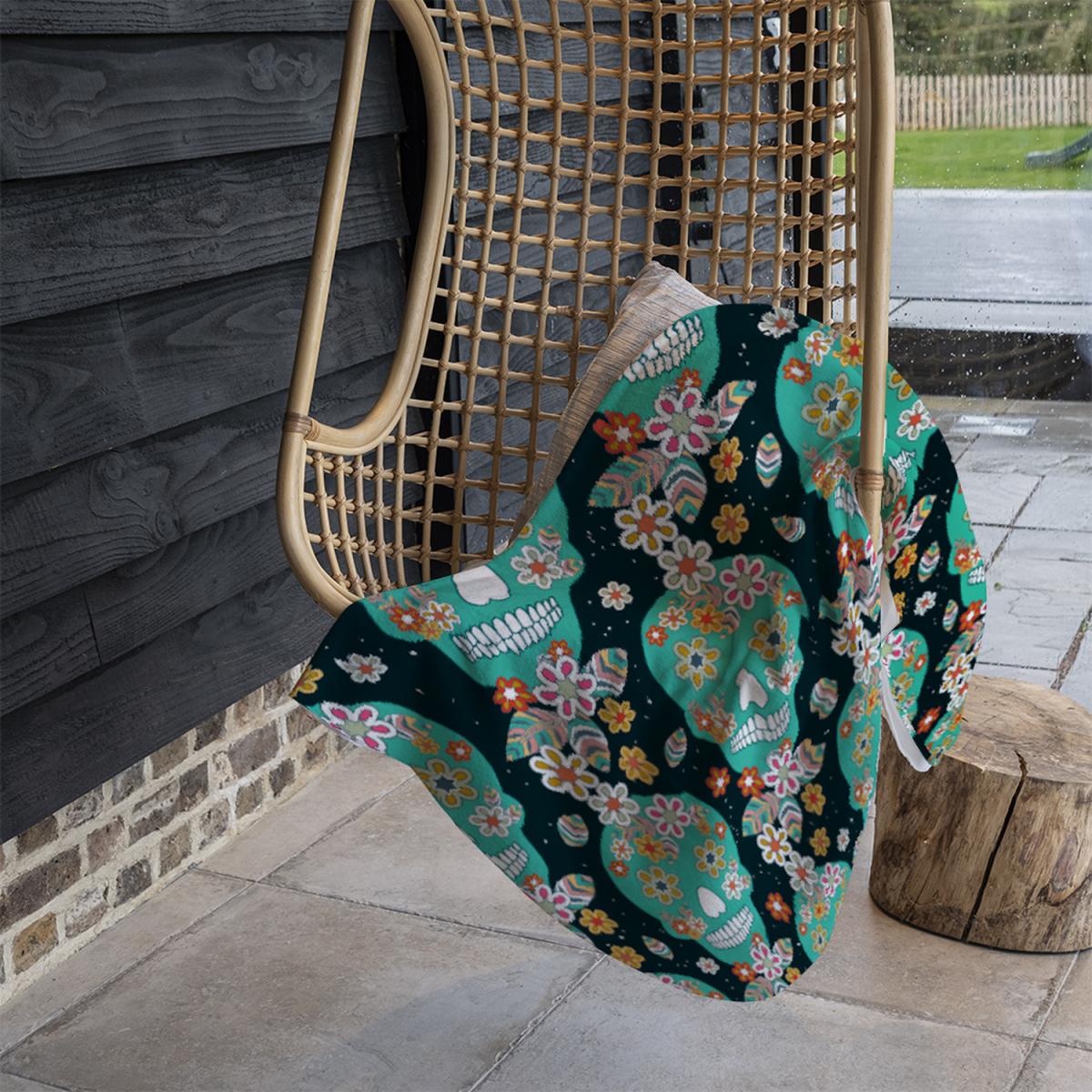 I love this colourful throw for its bold ethnic floral and skull pattern-it adds character and a pop of colour to any space. It works particularly well in eclectic, bohemian, or global-inspired interiors, where its vibrant design can stand out against neutral tones. For styling, drape it casually over a sofa or armchair to create a laid-back, inviting vibe, or fold it neatly at the foot of a bed to introduce a touch of warmth and personality. In practical terms, its lively pattern can help mask everyday wear and tear, making it ideal for lively households or outdoor patio areas. Overall, it’s a versatile piece that combines aesthetic flair with everyday functionality.