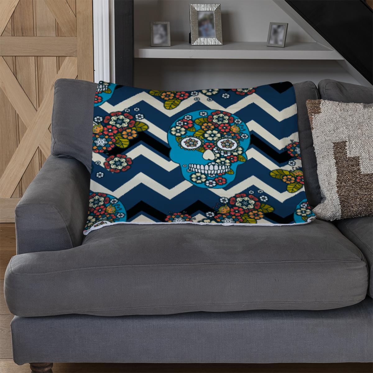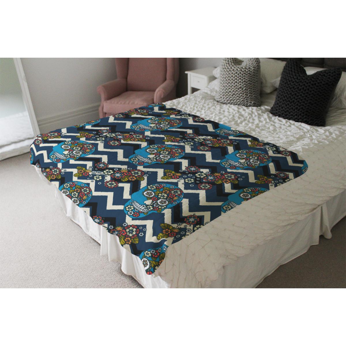 Embroidery Colorful Simplified Ethnic Skull Blue Pattern Blanket - Blue