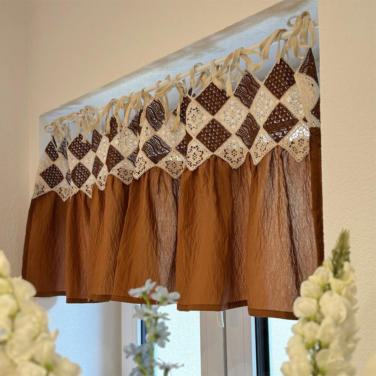 Embroidery Crochet Half Curtain - Brown / 62cm