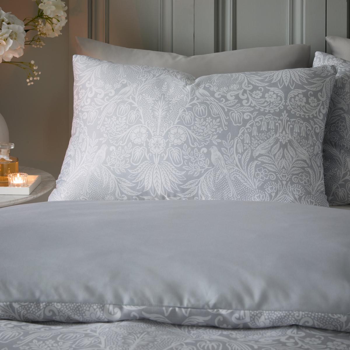 * Includes standard pillowcase(s) * Choose from easy-care polycotton or 100% Cotton material * Secure button closure * Machine washable An elegant floral design fills the face and reverse canvas of this Emelie duvet cover set. With a choice of material crafted from either polycotton or 100% cotton, this set is easy to care for and is fully machine washable. The duvet cover set has been finished with a button closure which helps secure the cover around the duvet whilst in use. This collection is verified by OEKO-TEX® and independently tested for harmful substances as well as manufactured using sustainable processes under socially responsible working conditions.