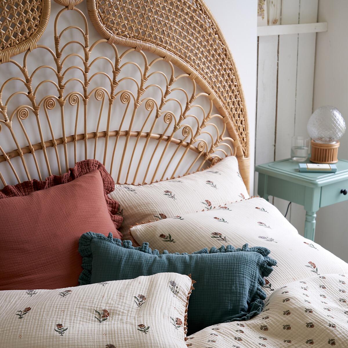 Plant and floral motifs, refined crochet finishes... Emeline has a delicate design. A romantic and country spirit that brings a soft and bucolic atmosphere to your interior. A signature design by La Redoute Interiors. Cotton muslin is light, supple and super soft. Naturally textured, they do not require ironing and become more beautiful over time. Product Details • 100% cotton, 135g/m2 • Cotton muslin • Floral print front/small flower print back • Crochet finish • Straight buttoned hem. As the seasons change, add your own personal touch by mixing the Emeline range with our range of Scenario plain bedding. Care Advice • Machine washable at 60°C • By washing your laundry at 40°C instead of 60°C, you limit energy consumption • Product will regain its texture after tumble drying. Dimensions • 140 x 200cm: Single • 200 x 200cm: Double • 240 x 220cm: King • 260 x 240cm: King • OEKO-TEX® Standard 100. Standard 100 certification by OEKO-TEX® tests textile products for harmful substances via an independent, international label.