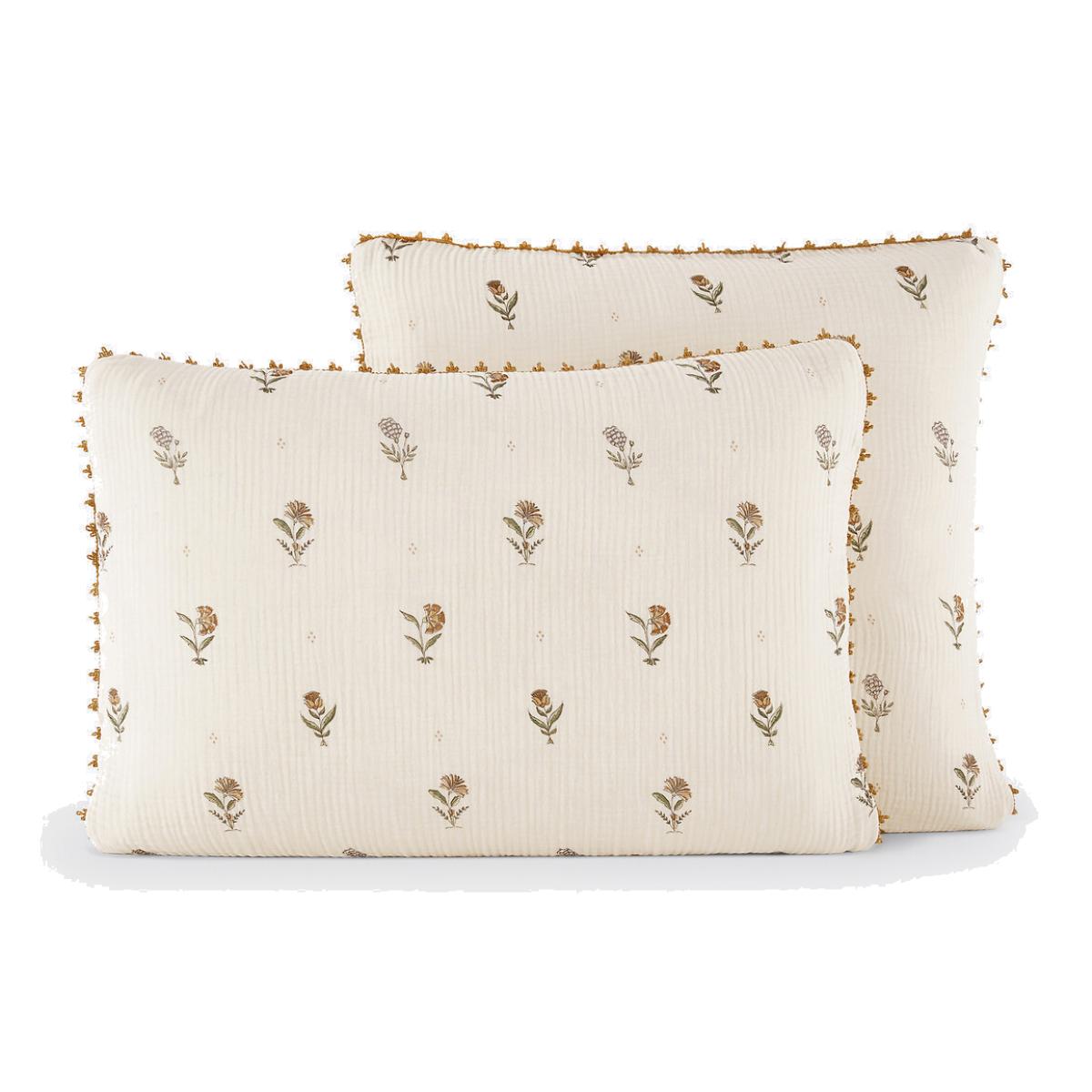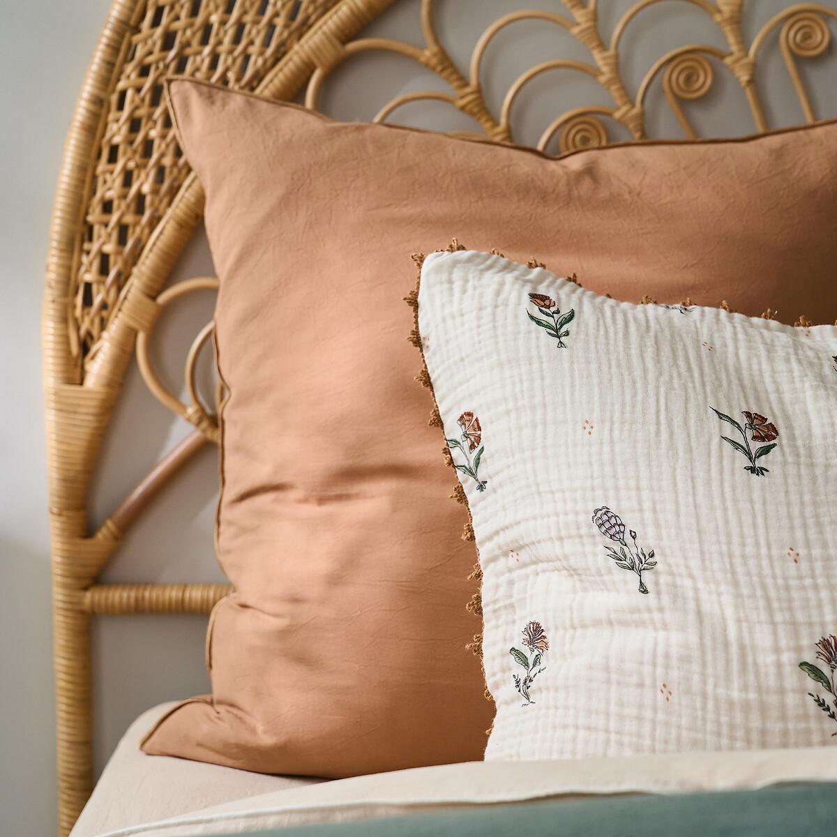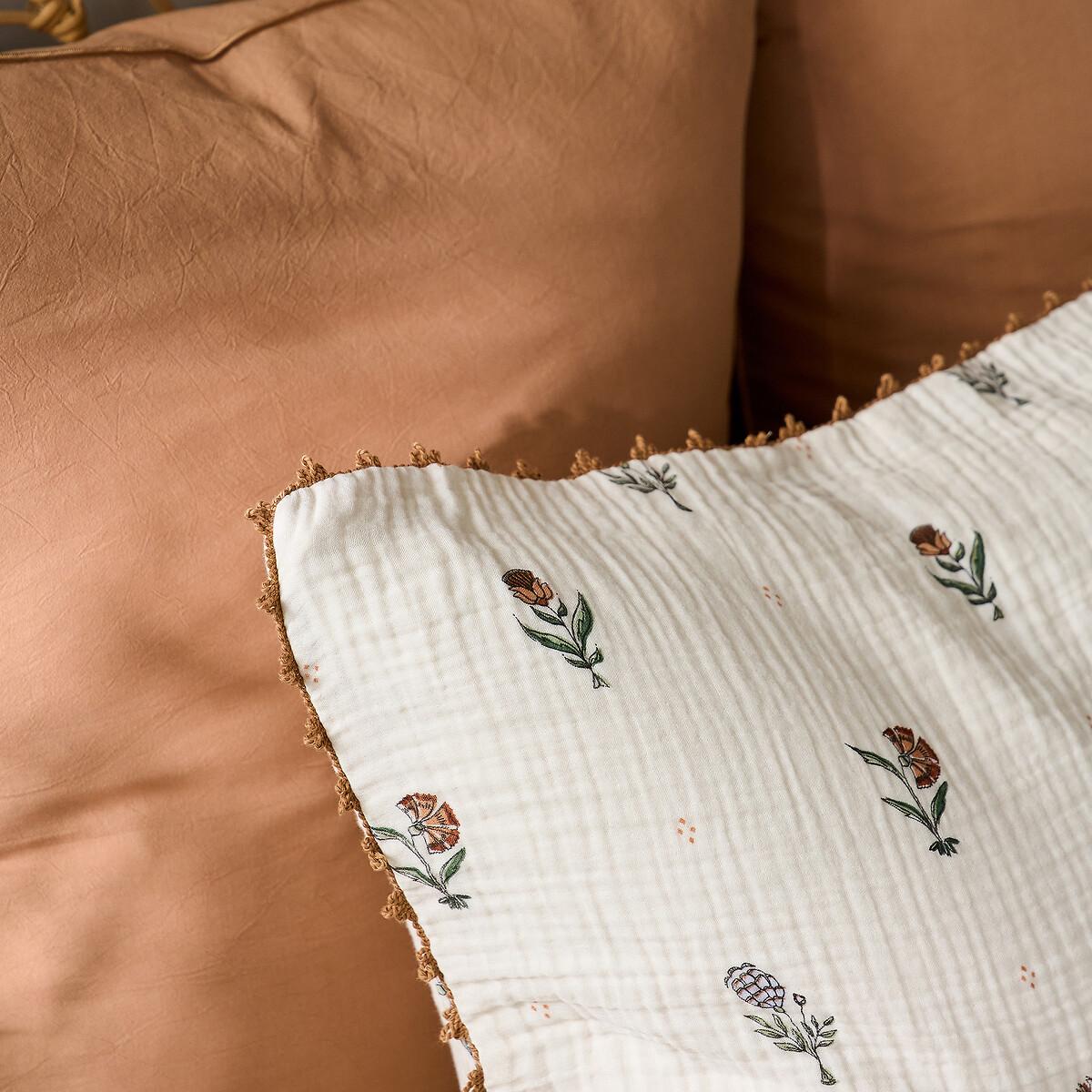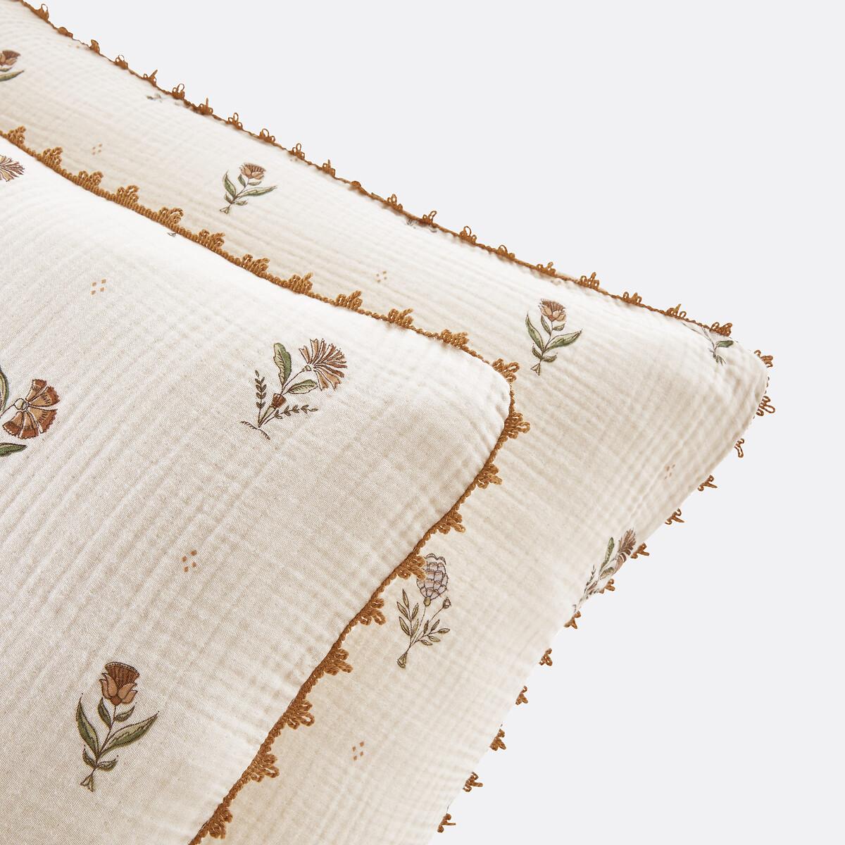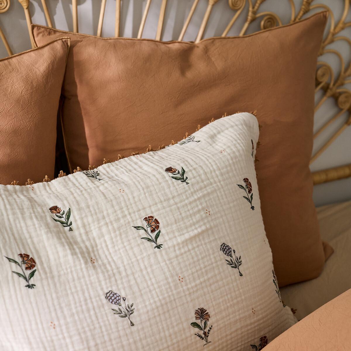Emeline bed linen is part of the La Redoute Intérieurs Signatures collection. A selection of exclusive creations, designed by our in-house design studio. Inspiring, easy to live with, trendy... these products have become our customers' favourites. and no doubt yours!. A design by Justine Monchanin:"For this design, I drew my inspiration from traditional Indian prints using the blockprint technique. I have revisited this expertise to give it a more romantic, country feel by working on the colours and a more ethereal fabric. A crochet finish adds a delicate touch to the bed linen. The choice of cotton muslin gives the bed linen a soft, comforting feel. "Cotton muslin is light, supple and super soft. Naturally textured, they do not require ironing and become more beautiful over time. Product Details • 100% cotton, 135g/m2 • Cotton muslin • Floral print on both sides • Crochet finish. Care Advice • Machine washable at 60°C • By washing your laundry at 40°C instead of 60°C, you limit energy consumption • Product will regain its texture after tumble drying • The cotton muslin may show slight marks due to packaging creases. We recommend that you wash the product as soon as you receive it, and then tumble dry it to restore its look and the beautiful waffle effect. Dimensions • 50 x 70cm: Rectangular pillowcase • 63 x 63cm: Square pillowcase • OEKO-TEX® Standard 100. Standard 100 certification by OEKO-TEX® tests textile products for harmful substances via an independent, international label.