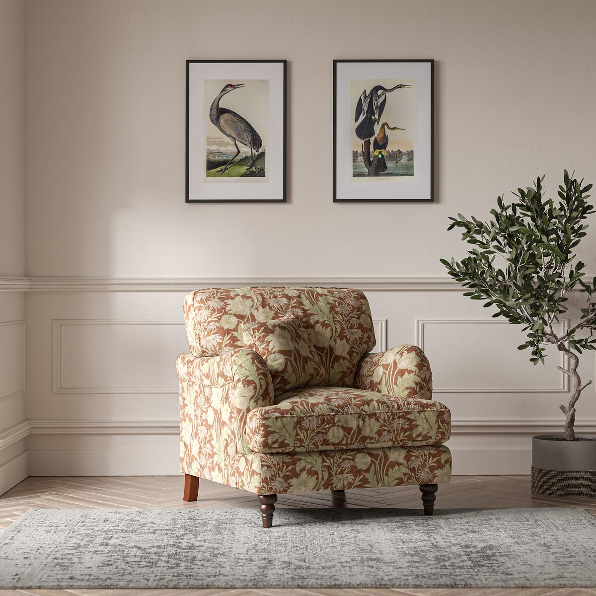 I love the Emeline floral armchair for its charming vintage vibe and cosy feel, making it a versatile piece for both classic and eclectic interiors. Its floral chenille fabric adds texture and warmth, pairing beautifully with neutral or colour-rich schemes. It works particularly well in living rooms, reading nooks, or even bedrooms with a relaxed, feminine aesthetic. For styling tips, consider combining it with layered textiles like throws and cushions in complementary colours or patterns to enhance its character. Pairing with wooden or curved furniture pieces will emphasise its timeless charm, and placing it near a statement lamp or a side table will complete a welcoming, lived-in look.