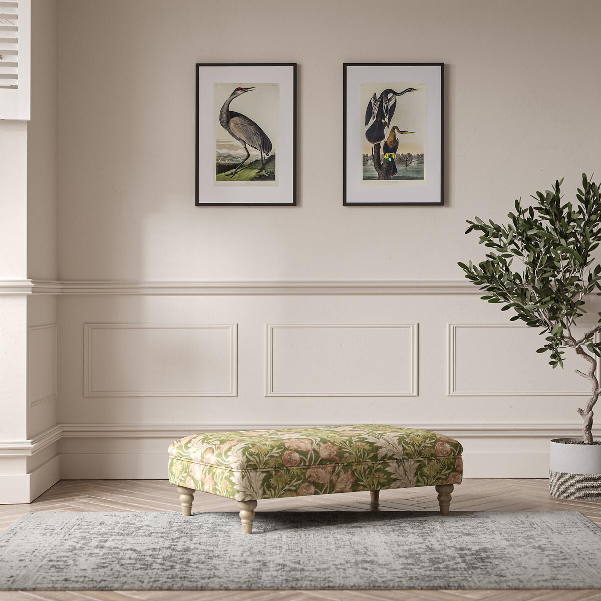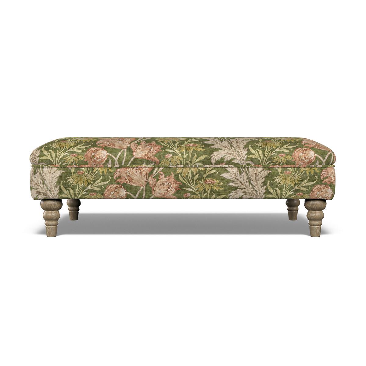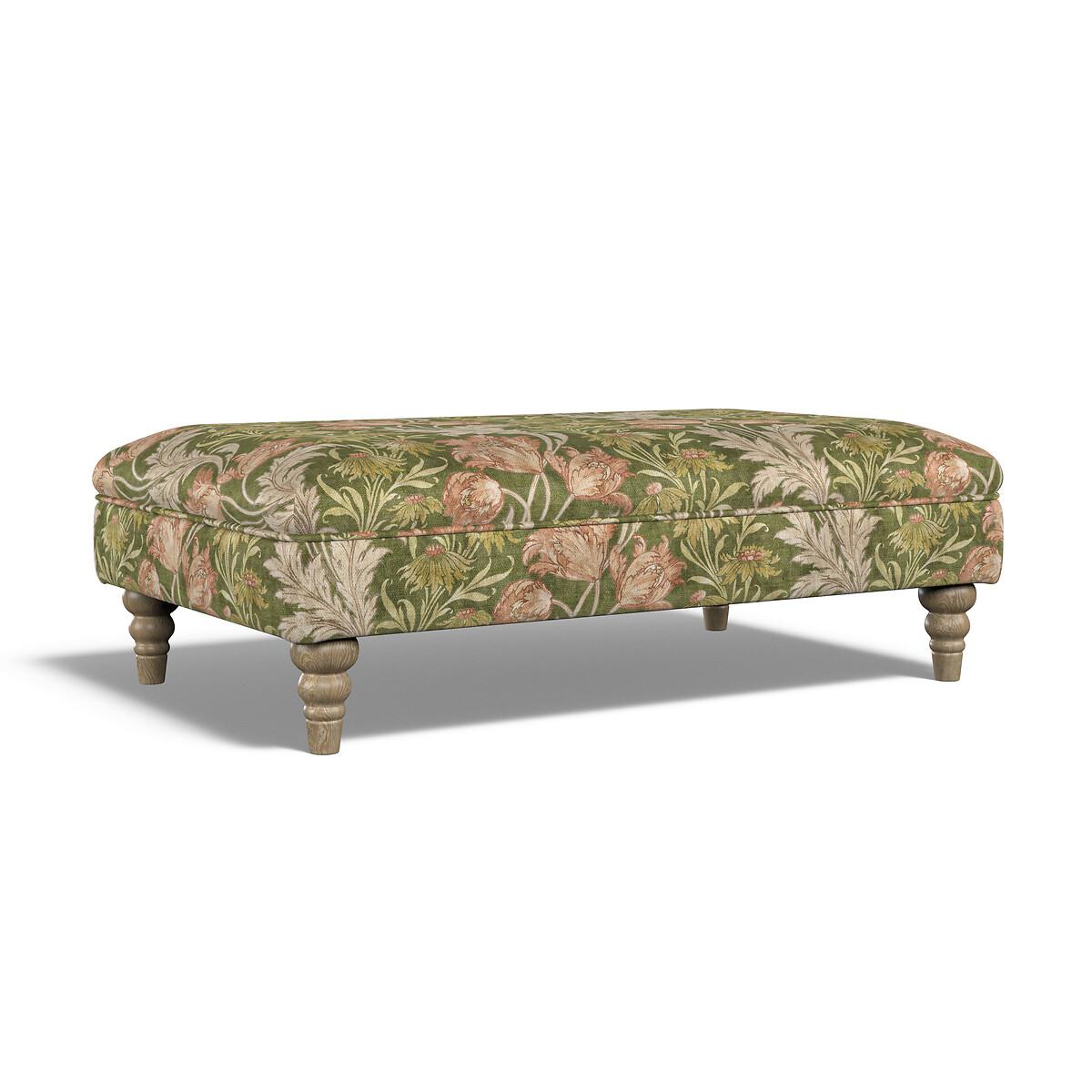 Meet Emeline - classic curves, standout style. A flawless silhouette defined by sumptuous pleated fabric, gracefully scalloped roll arms, and timeless brass castors that whisper vintage charm. She’s effortlessly sophisticated, a true statement piece that transforms any room into a refined sanctuary. Beneath her beautiful curves lies exceptional comfort: a sprung base supporting expertly balanced foam and fibre fillings, all crowned with a high back designed for upmost support and ultimate relaxation. Finished with delicate piped edges, she’s all about the details that turn a sofa into a statement. Dress her in our soft brushed fabric for a timeless, cozy feel, wrap her in a tonal basket weave for a contemporary touch, indulge in vibrant velvet for a rich and sumptuous finish or go bold with a vintage floral chenille that makes her the room’s undeniable showstopper. Available as a 2-seater or 3-seater, with matching armchair, snuggle chair and footstool to complete the look. Emeline isn’t just our best seller for nothing - she’s the pinnacle of craftsmanship and comfort, the ultimate symbol of elevated living.• Floral Chenille - Adorned with a Victorian-inspired botanical motif, she weaves artsy elegance into the plush embrace of soft chenille. Rich in detail and irresistibly touchable, her pattern blooms with timeless charm while offering cosy comfort you’ll want to sink into. Not sure she’s the one? Order a FREE swatch and let her charm you in person.• FSC®-Certified Hardwood Frame - Built on a foundation of FSC®-certified solid wood, her frame is strong, sustainable, and designed to stand the test of time - offering comfort you can feel good about.• Turned Legs - Her turned wooden feet are elegantly carved and finished with either an antique or limed wash, a detail that highlights the natural grain. Subtle yet distinctive, they bring warmth, texture, and timeless charm. Please note, each model is finished with thoughtfully coordinated feet -- Burgundy and Beige feature elegant antique feet, while Blue and Green are paired with limed wash feet for a fresh, balanced look. Every one of our made-to-order products is meticulously crafted right here in the UK. Each hardwood frame is expertly dowelled, glued, and screwed to ensure lasting strength, then lovingly dressed with the finest fabrics and premium fillings. But we don’t stop at craftsmanship - every frame and fabric undergoes thorough inspection and rigorous testing to meet the highest standards of quality and safety. All fillings and coverings comply with the 1988 regulations for resistance to cigarette and match ignition, so you can relax knowing your sofa is built with care. Plus, your sofa is backed by a 3-year manufacturer’s warranty from the date of delivery (subject to terms and conditions), for complete peace of mind. Product Composition• Fabric - Floral Chenille (100% Polyester)• Fillings - Extraflex Foam• Feet - Solid Oak Wood• Frame - Solid Hardwood Product Dimensions• Overall width: 106 cm• Overall depth: 65 cm• Overall height: 35 cm. Please remember to measure your available space before ordering to be sure your sofa will fit. Don't forget to measure accessways and corners, and consider any obstacles. Packaged DimensionsL10. 8 cm x W67 cm x H15 cm, Weight 16.5 kg. This product will be dispatched by one of our trusted suppliers. You’ll be contacted by their selected courier about your delivery. Your product will be delivered to your room of choice. Feet may be assembled on arrival. BUOY01
