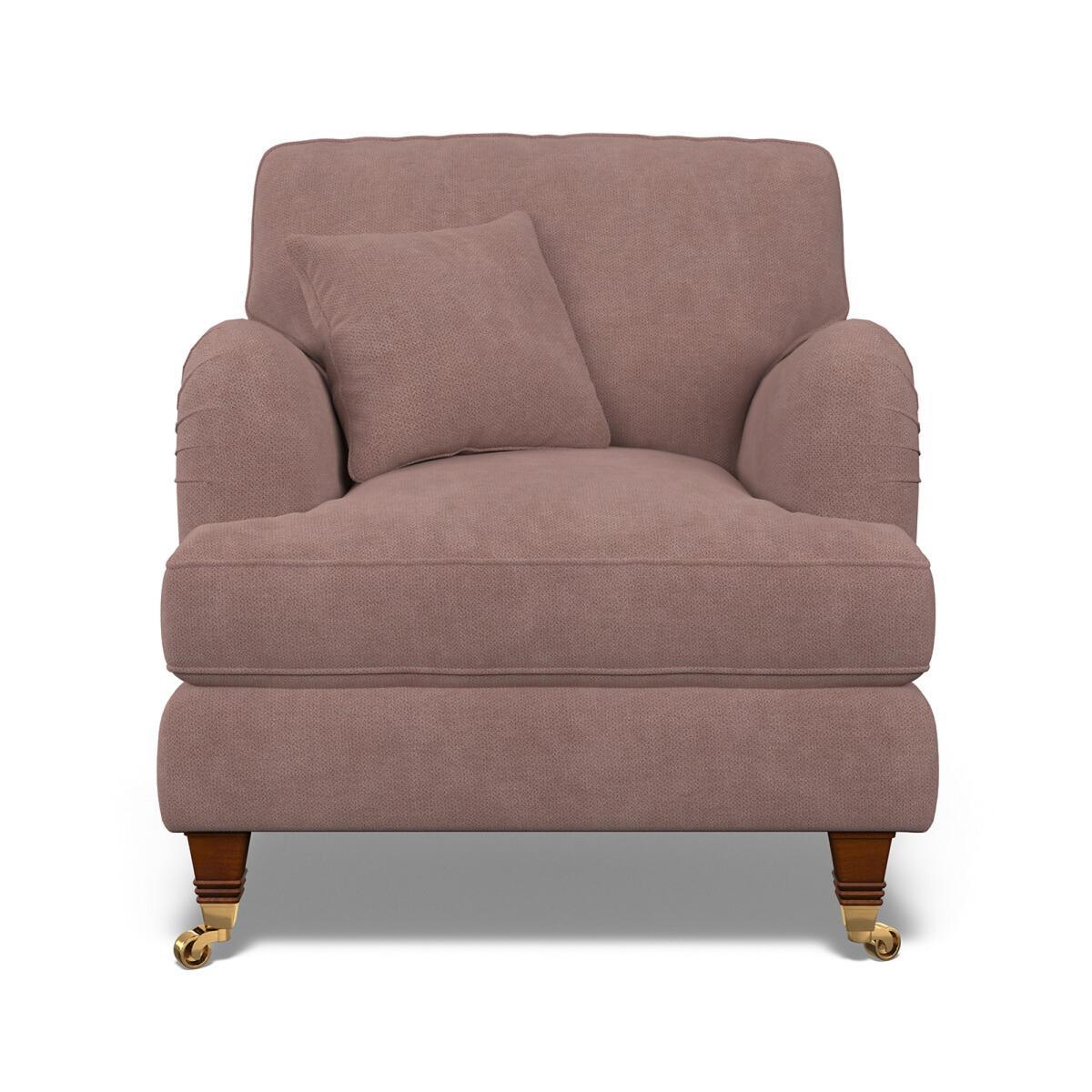 The perfect accent armchair for a cosy corner. With its pleated fabric, beautiful curves and classic castors, Emeline's elegant silhouette fits both modern or vintage living rooms. Foam and fibre fillings are paired with a sprung base for supreme comfort. A high back adds extra support, and scalloped English roll arms and piped edge detailing finish the sumptuous look. Keep it classic in soft brushed fabric or go bold in a vibrant velvet. Match with the Emeline footstool, or choose a bigger size with the 2 seater, 3 seater, or corner chaise sofa. Product details• Soft Brushed - A cosy and practical flat and soft weave featuring a gently brushed handle for a superbly snuggly seat. Check it's right for you - order a FREE swatch above.• A supportive seat with medium comfort level, underpinned by a spring frame for durability.• Extraflex© high comfort seat cushions have a special hybrid filling made up of a thick layer of resilient foam, topped with a generous layer of super soft fibre, meaning they are firm in the centre but have a pillowy comfortably layer of softness. • Back cushions full of aerated fibres provide softness and give you that "sink in" feeling.. Just flip to freshen up - the back cushions are finished both sides and are reversible. • Scatter cushion included as pictured in matching fabric. Fibre filled. • Elegantly carved solid beech wood castor feet with brass finishing.• Serpentine seat springs & silent wire.• Superloop back springs.• Solid hardwood frame.• Removable covers (both seat and back)• Removable feet.• Lovingly handmade in the UK.All our made to order sofas are carefully manufactured in the UK.Each hardwood frame is dowelled, glued, and screwed before being paired with the finest fabrics and fillings. And it doesn't stop there - for customer peace of mind and safety, all frames and fabrics are rigorously examined, inspected, and tested to the highest standards. All filling material(s) and covering fabric(s) meet the requirements for resistance to cigarette and match ignition in the 1988 safety regulations. A 2 year manufacturers warranty from date of delivery (guarantee of replacement of any faulty goods subject to the product having been used under normal conditions for its intended purpose)Product composition• Fabric- Soft Brushed (100% polyester)• Seat Fillings - Extraflex foam• Back Fillings - Blown fibre• Feet - solid beech wood• Frame - solid hardwood Product Dimensions Overall width: 89 cm. Overall depth: 96 cm. Overall height: 97 cm. Seat height: 54 cm. Seat depth: 56 cm. Seat width between the arms: 59 cm. Back height (from base): 84 cm. Back height (from seat): 41 cm. Arm height (from floor): 65 cm. Arm height (from seat): 11 cm Clearance to floor (leg height): 13.5 cm. Small scatter cushion: 45 cm x 45 cm. Please remember to measure your available space before ordering to be sure your sofa will fit. Don't forget to measure accessways and corners, and consider any obstacles. Package DimensionsL9. 8 cm x W91 cm x H86 cm, Weight 37.5 kg. This product will be dispatched by one of our trusted suppliers. You’ll be contacted by their selected courier about your delivery. Your product will be delivered to your room of choice. Some of our Made to Order sofas and armchairs are delivered with Travel Glide feet which are used when the sofa is in transit. You can find the actual feet in a bag on the seat cushion of the sofa, complete with assembly instructions. No additional tools are required for assembly. BUOYA01