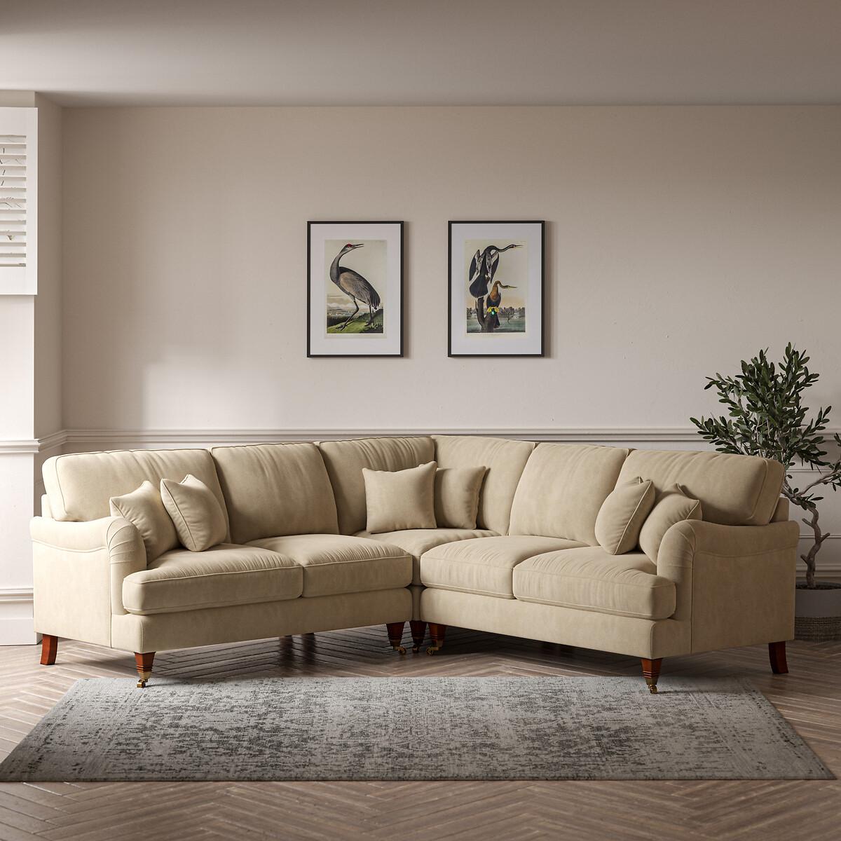 Emeline Soft Brushed Corner Sofa with Castor Legs