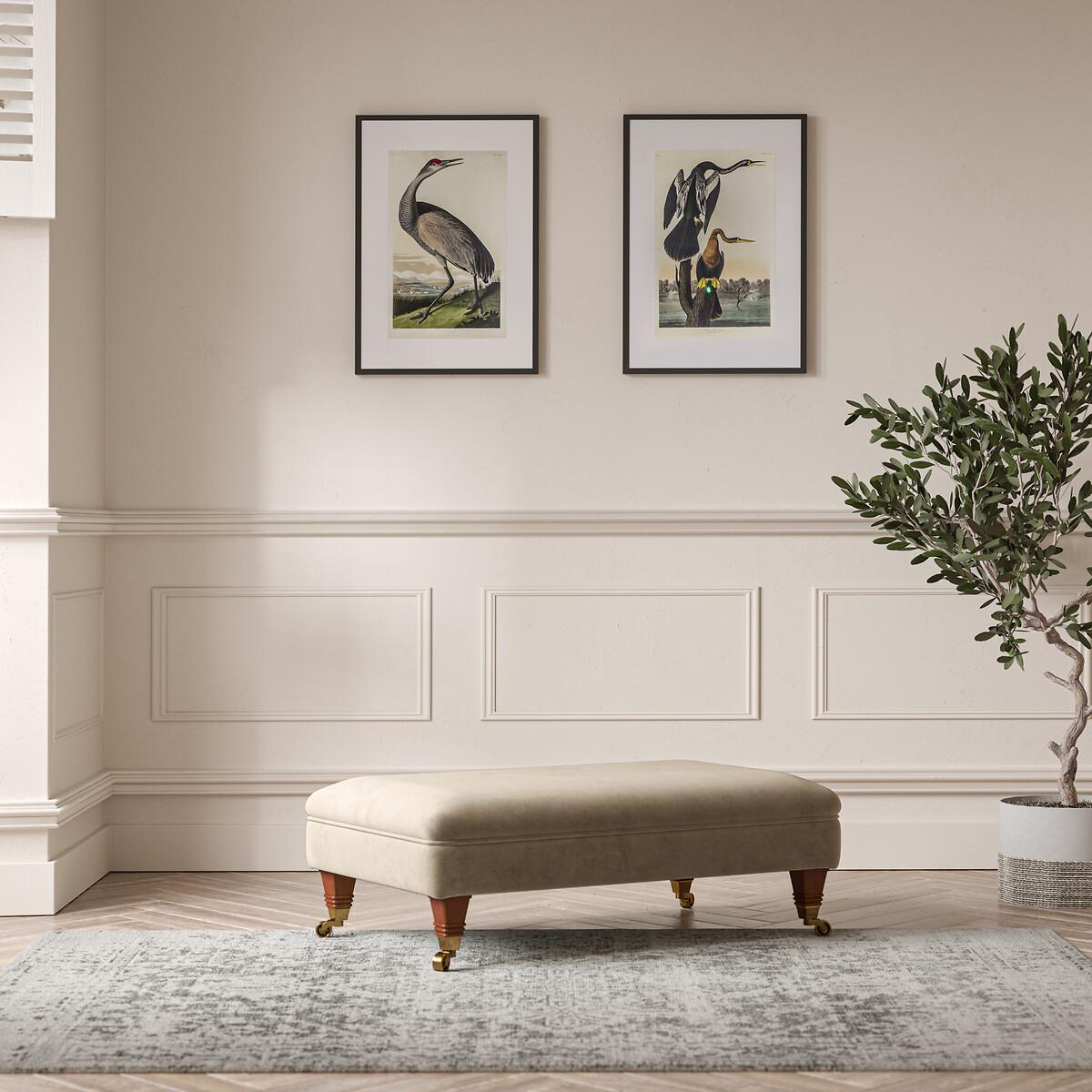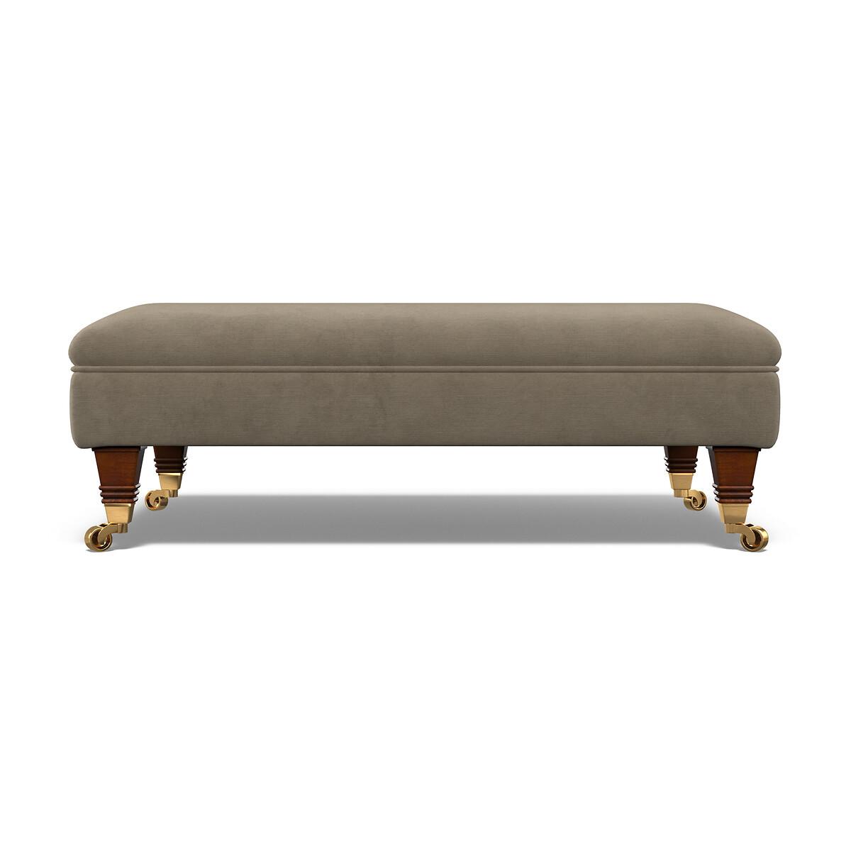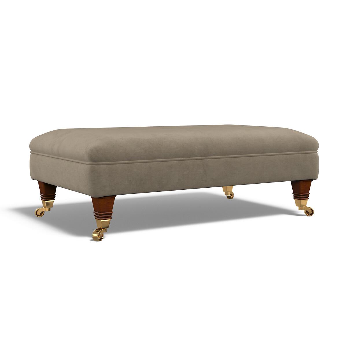 Perfect for tired feet at the end of a long day, or style it up with a tray and relaxing candles. With its pleated fabric, beautiful curves and classic castors, Emeline's timeless shape fits both modern or vintage living rooms. Keep it classic in soft brushed fabric or go bold in a vibrant velvet. Match with the Emeline armchair, or go large with the 2 seater, 3 seater, or corner chaise sofa. Product details• Textured Velvet - A lustrous velvet with a slight sheen - beautifully soft to touch and luxurious at sight. Linear textured detailing adds tactile interest and helps hide any wear from family life. Check it's right for you - order a FREE swatch above.• High density foam base interior with a hand-rolled carded fibre, channelled topper • Solid hardwood frame.• Removable feet.• Lovingly handmade in the UK.All our made to order sofas are carefully manufactured in the UK.Each hardwood frame is dowelled, glued, and screwed before being paired with the finest fabrics and fillings. And it doesn't stop there - for customer peace of mind and safety, all frames and fabrics are rigorously examined, inspected, and tested to the highest standards. All filling material(s) and covering fabric(s) meet the requirements for resistance to cigarette and match ignition in the 1988 safety regulations. A 2 year manufacturers warranty from date of delivery (guarantee of replacement of any faulty goods subject to the product having been used under normal conditions for its intended purpose)All our made to order sofas are carefully manufactured in the UK.Each hardwood frame is dowelled, glued, and screwed before being paired with the finest fabrics and fillings. And it doesn't stop there - for customer peace of mind and safety, all frames and fabrics are rigorously examined, inspected, and tested to the highest standards. Product composition• Fabric- Velvet (100% polyester)• Fillings - Extraflex foam• Feet - solid beech wood• Frame - solid hardwood Product Dimensions Overall width: 106 cm. Overall depth: 65 cm. Overall height: 35 cm. Please remember to measure your available space before ordering to be sure your sofa will fit. Package dimensionsL10. 8 cm x W67 cm x H15 cm, Weight 16.5 kg. This product will be dispatched by one of our trusted suppliers. You’ll be contacted by their selected courier about your delivery. Your product will be delivered to your room of choice. Some of our Made to Order sofas and armchairs are delivered with Travel Glide feet which are used when the sofa is in transit. You can find the actual feet in a bag on the seat cushion of the sofa, complete with assembly instructions. No additional tools are required for assembly. BUOYA01