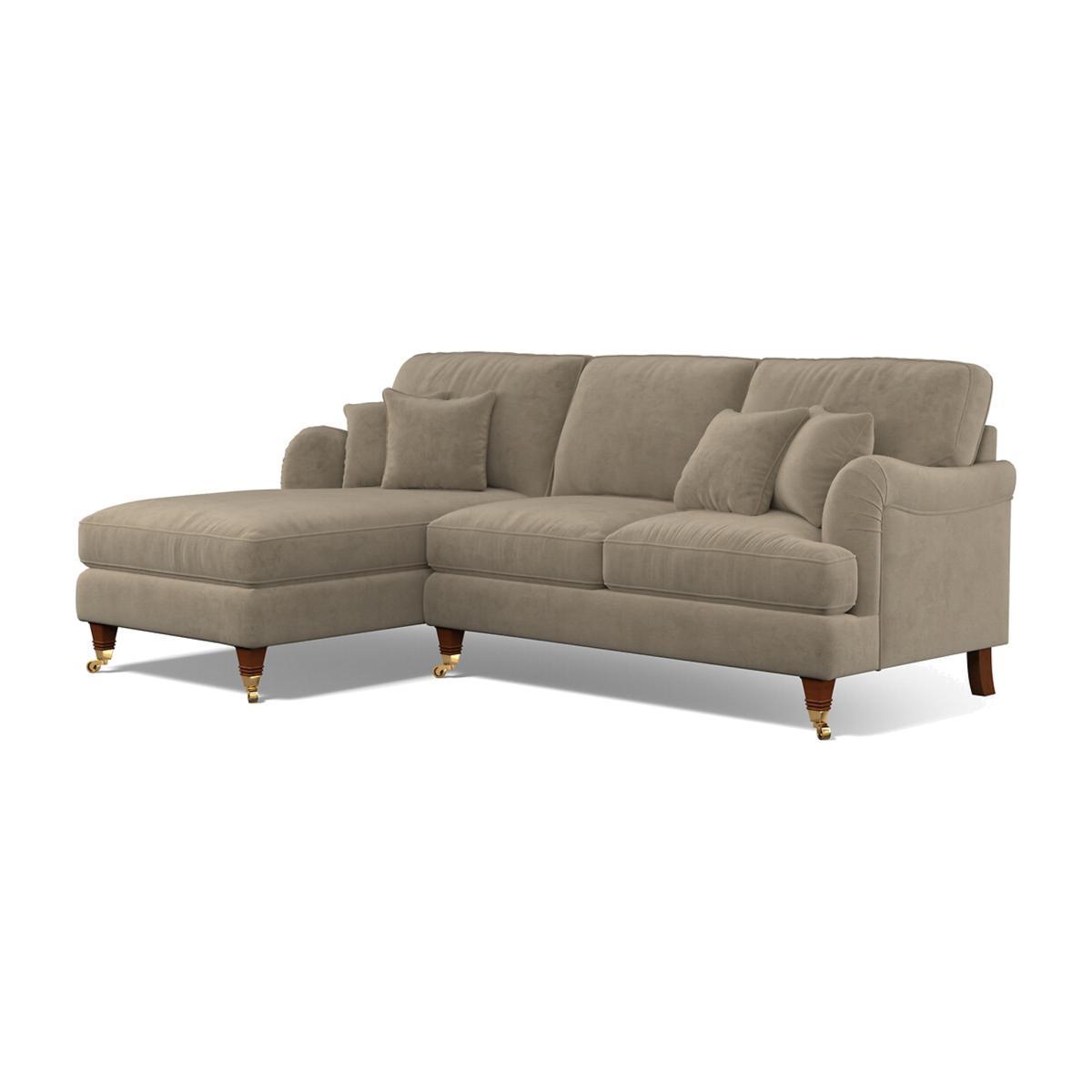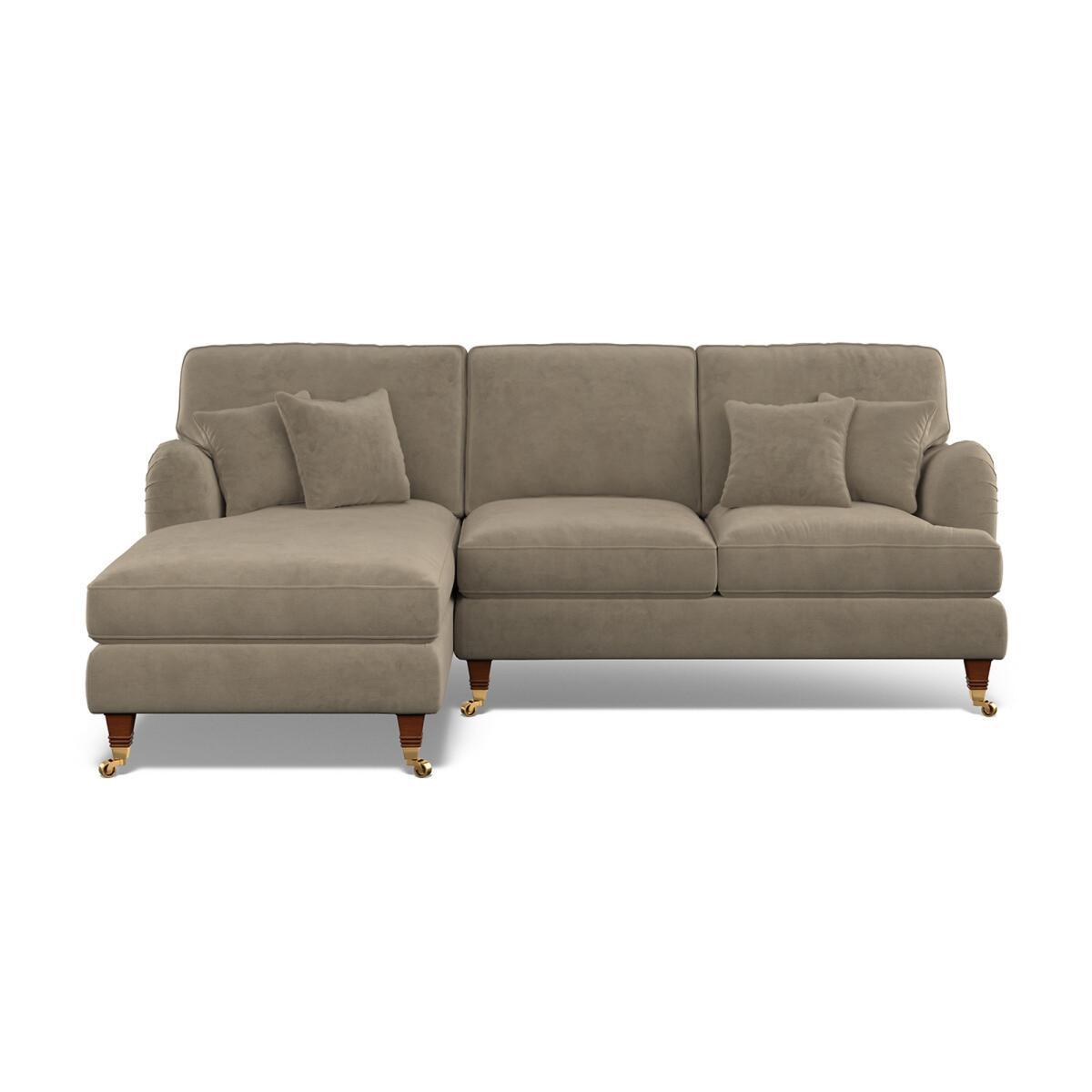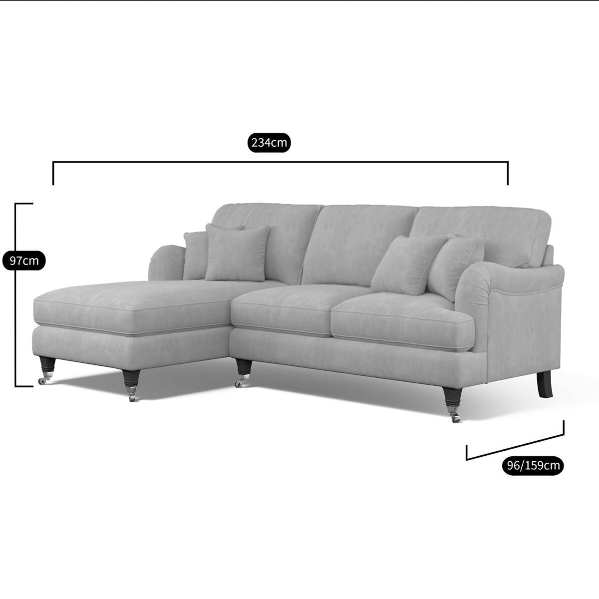 Put your feet up and S-T-R-E-T-C-H. With its pleated fabric, beautiful curves and classic castors, Emelines's timeless shape fits both traditional or contemporary spaces. A high back and scalloped arms all add that extra comfort. Keep it classic in soft brushed fabric or go bold in a vibrant velvet. All made to order sofas are carefully manufactured in the UK.Each hardwood frame is dowelled, glued, and screwed before being paired with the finest fabrics and fillings. And it doesn't stop there - for customer peace of mind and safety, all frames and fabrics are rigorously examined, inspected, and tested to the highest standards. Product Specifications:. Product Dimensions: L159cmxW234cmxH9. 7cm. Fabric: Textured Velvet - 100% Polyester. Feet: Antique Brass Castor. Scatter Cushions: 4 Fibre filled Scatter Cushions included in matching fabric. Extraflex high comfort seat cushions - A high density foam base seat interior with a hand-rolled carded fibre, channelled topper which provides both softness and support. Superloop back springs. Serpentine seat springs & silent wire. Care Guide :Extraflex seat cushions should be plumped up on a regular basis to help maintain the aesthetical appeal of your upholstery, the plumping of cushions is essential to help retain the comfort and softness of any piece of upholstered furniture. To improve the longevity of your hand-made furniture, we recommend rotating cushions (where applicable).For further information on maintaining your furniture please refer to the care guide located under the seat platform. Packaged Dimensions:Parcel 1:152cmx98cmx86cm, Parcel 2: 161cmx86cmx86cm - Please remember to measure your available space before ordering. The Emeline Range is also available in Velvet & Soft Brushed in a variety of colours. This product will be dispatched by one of our trusted suppliers. You’ll be contacted by their selected courier about your delivery. Your product will be delivered to your room of Choice. All multi part items and feet will be assembled once delivered.
