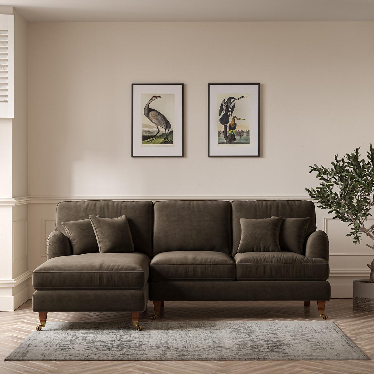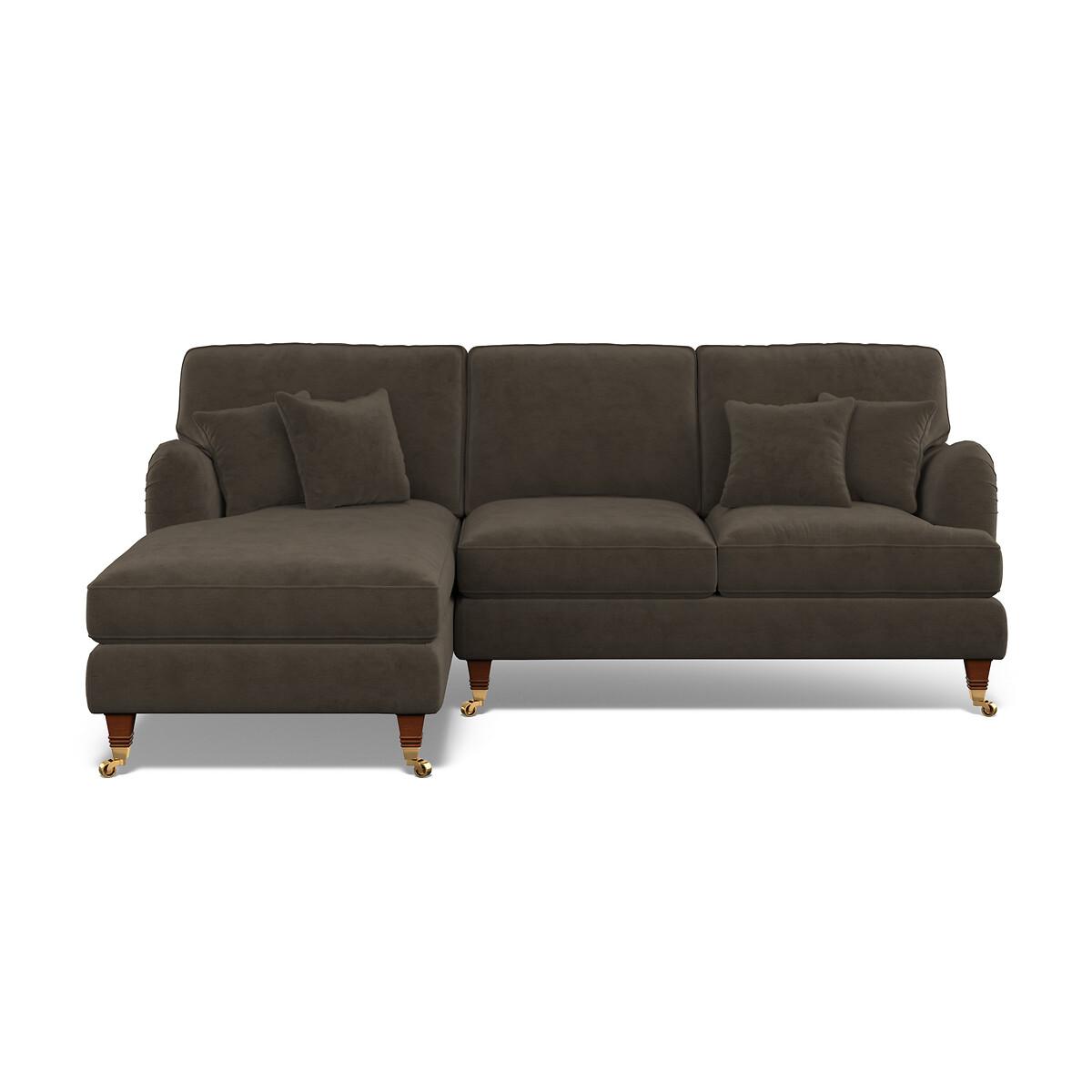 Emeline Textured Velvet Left Hand Corner Chaise Sofa with Antique Castor Legs (Left Facing)