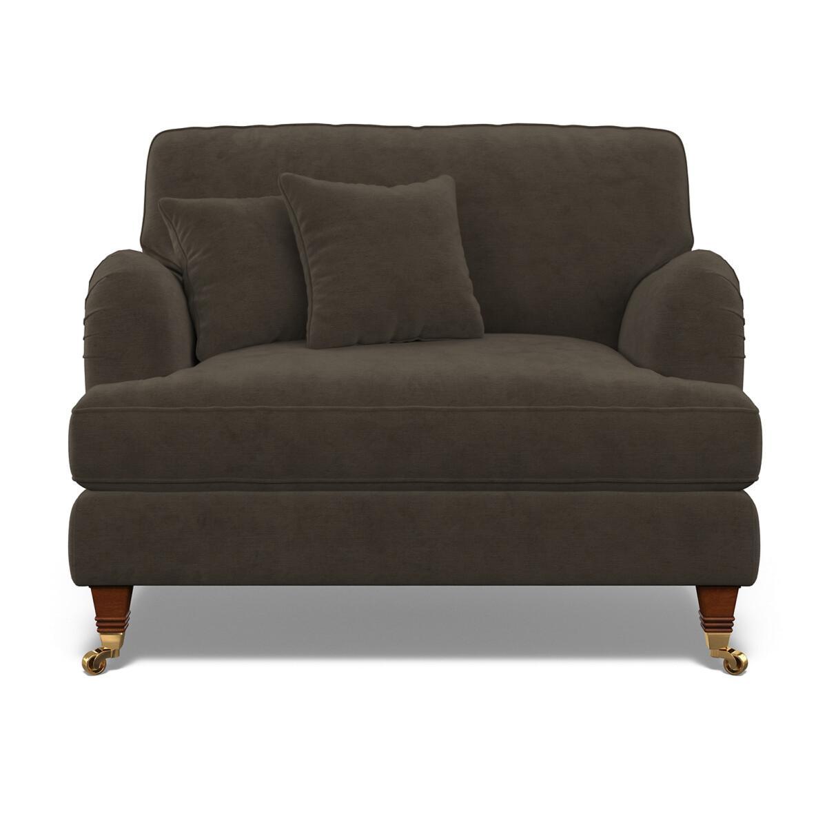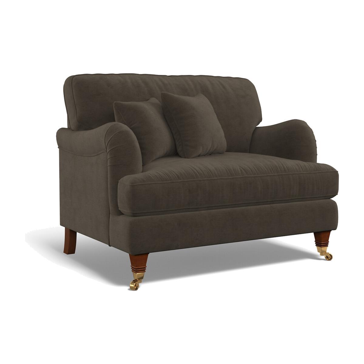Deliciously spacious for 1. With its pleated fabric, beautiful curves and classic castors, Emelines's timeless shape fits both traditional or contemporary spaces. A high back and scalloped arms all add that extra comfort. Keep it classic in soft brushed fabric or go bold in a vibrant velvet. All made to order sofas are carefully manufactured in the UK.Each hardwood frame is dowelled, glued, and screwed before being paired with the finest fabrics and fillings. And it doesn't stop there - for customer peace of mind and safety, all frames and fabrics are rigorously examined, inspected, and tested to the highest standards. Product Specifications:. Product Dimensions: L96cmxW119cmxH9. 7cm. Fabric: Textured Velvet - 100% Polyester. Feet: Antique Brass Castor. Scatter Cushions: 2 Fibre filled Scatter Cushions included in matching fabric. Extraflex high comfort seat cushions - A high density foam base seat interior with a hand-rolled carded fibre, channelled topper which provides both softness and support. Superloop back springs. Serpentine seat springs & silent wire. Care Guide :Extraflex seat cushions should be plumped up on a regular basis to help maintain the aesthetical appeal of your upholstery, the plumping of cushions is essential to help retain the comfort and softness of any piece of upholstered furniture. To improve the longevity of your hand-made furniture, we recommend rotating cushions (where applicable).For further information on maintaining your furniture please refer to the care guide located under the seat platform. Packaged Dimensions: 121cmx98cmx86cm - Please remember to measure your available space before ordering. The Emeline Range is also available in Velvet & Soft Brushed in a variety of colours. This product will be dispatched by one of our trusted suppliers. You’ll be contacted by their selected courier about your delivery. Your product will be delivered to your room of Choice. All multi part items and feet will be assembled once delivered.