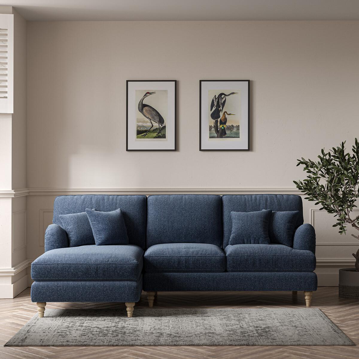 I love this Emeline Tonal Basket Weave corner sofa for its versatile colour palette and classic design, which makes it easily adaptable to both modern and traditional interiors. The blue tone adds a subtle pop of colour without overpowering a space, while the oak legs introduce a warm, natural touch. It's perfect for creating a cosy corner in a living room, especially when paired with layered textures like plush throws and cushions. To style it well, consider balancing the piece with lighter walls or introduce patterned cushions to add visual interest. This sofa works well in both neutral schemes and more vibrant interiors, offering practicality with its sizeable corner seating and timeless appeal.