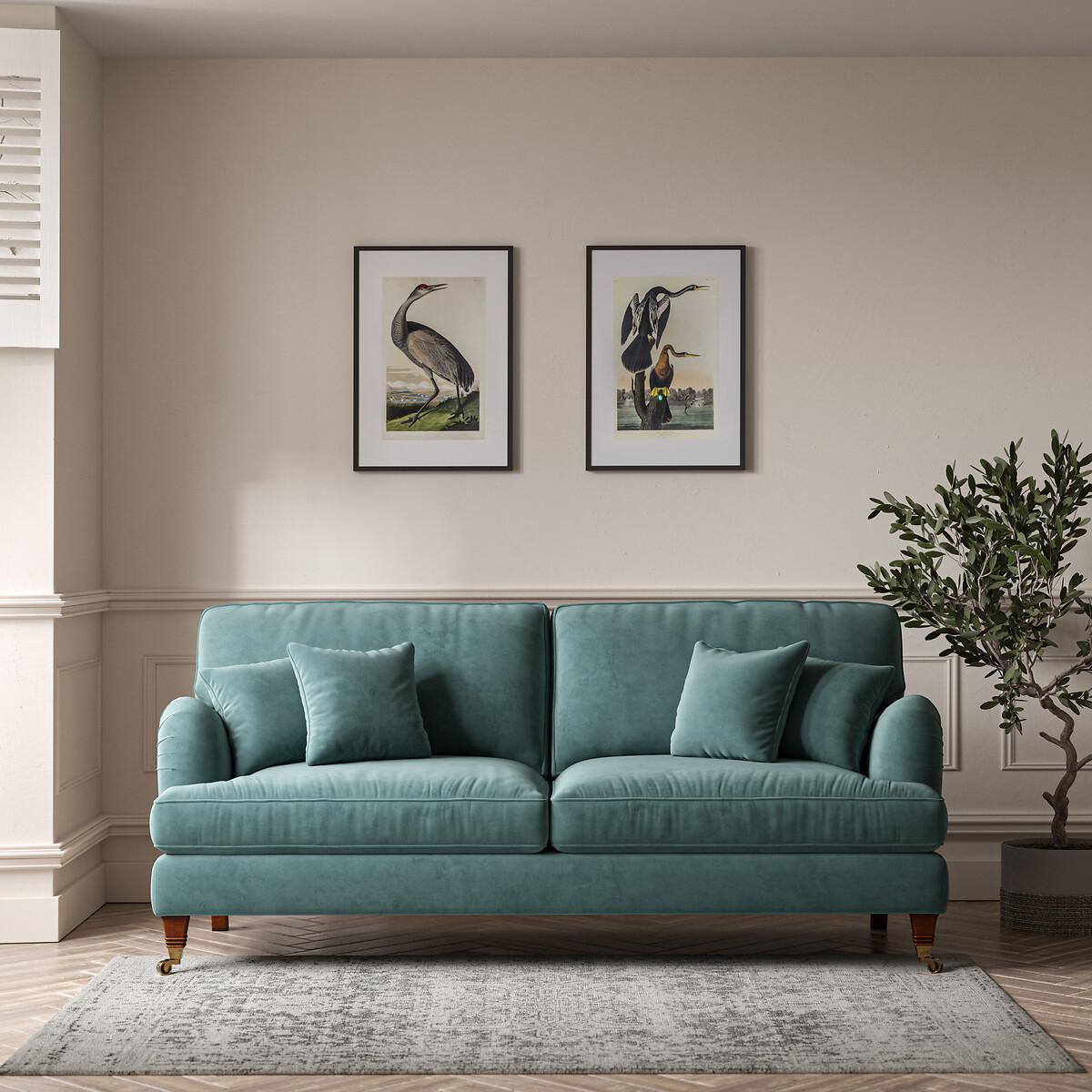 Emeline Velvet 4 Seater Sofa with Castor Legs