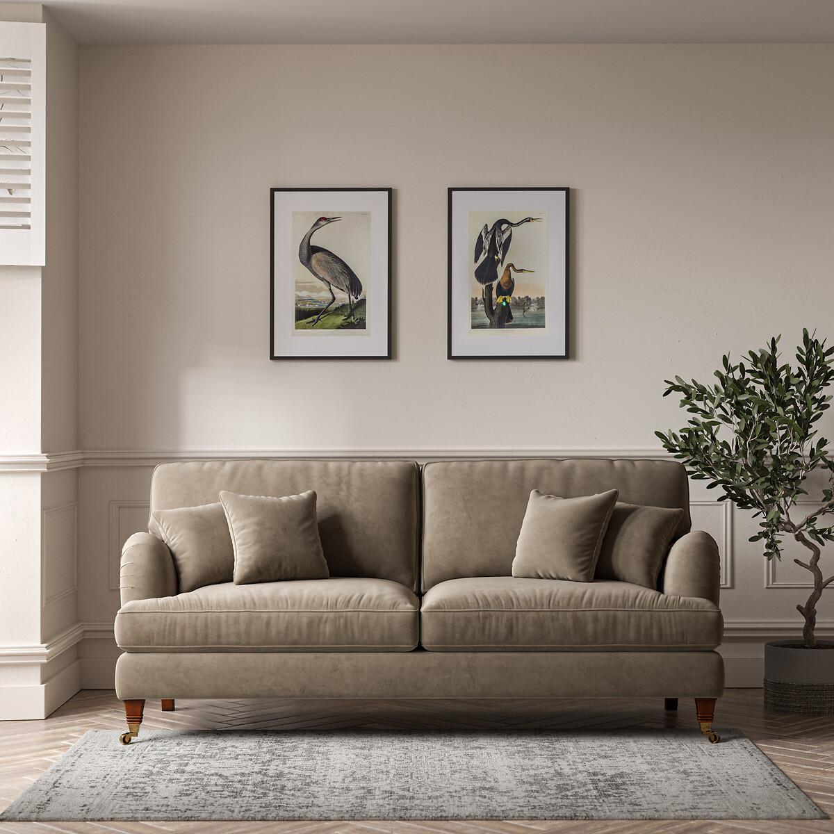 I love this sofa for its versatile and inviting look - the velvet adds a touch of luxury while the neutral shade keeps it adaptable. It works well in both traditional and contemporary interiors, especially those with a soft colour palette or a minimalist vibe. For styling, consider layering with textured cushions and throws to add depth, and pair it with statement lighting or side tables for a functional yet stylish setup. Its castor legs make it easy to move, perfect for creating flexible layouts or cleaning underneath. Overall, it’s a practical choice that balances comfort and elegance with ease.