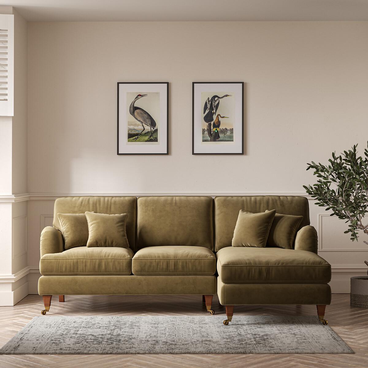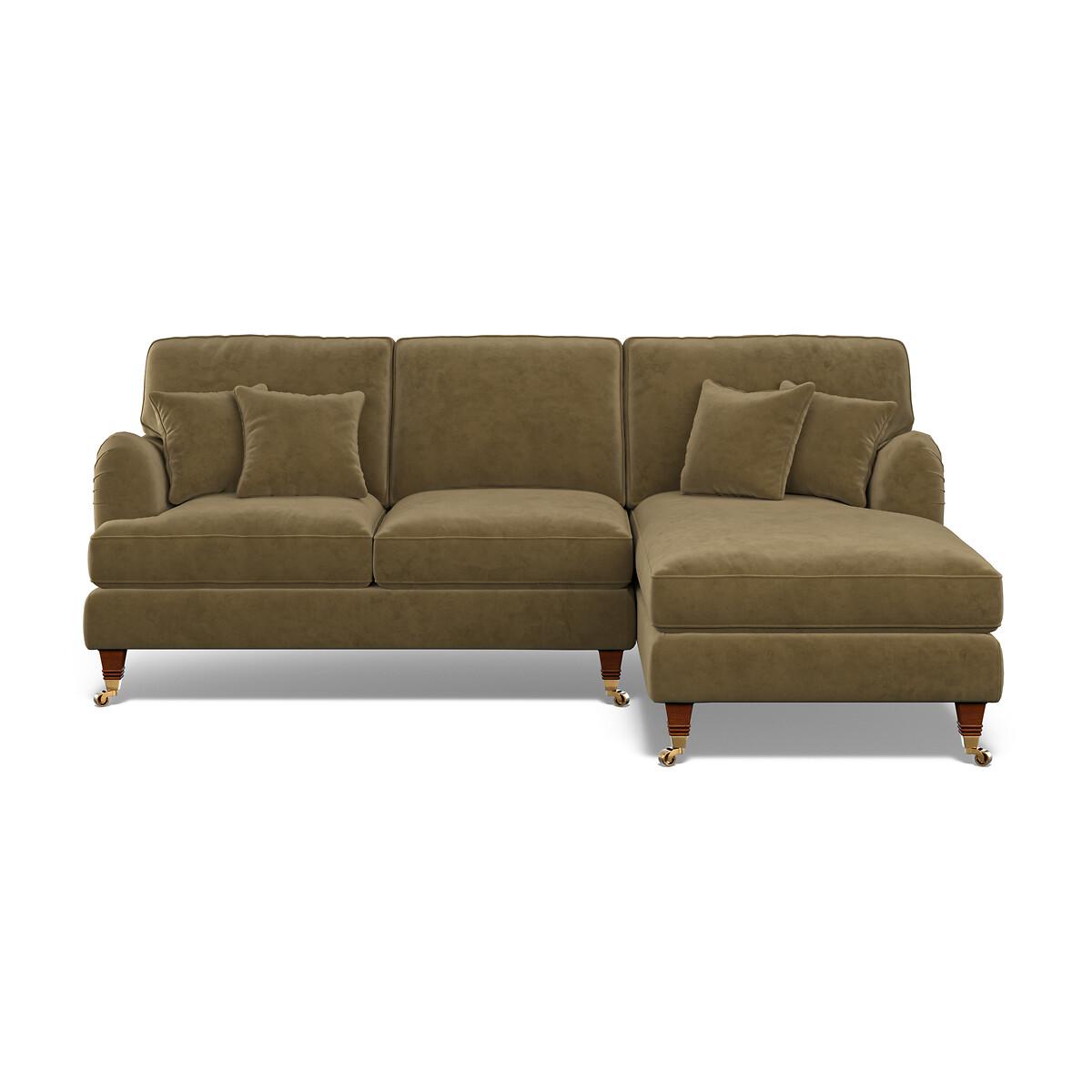 Emeline Velvet Corner Chaise Sofa with Antique Castor Legs (Left Facing)