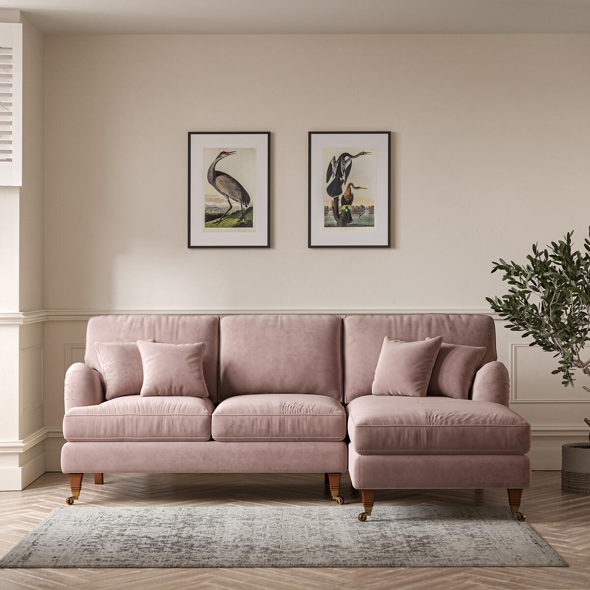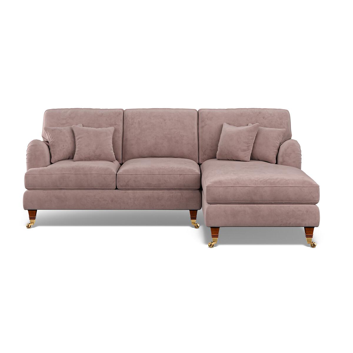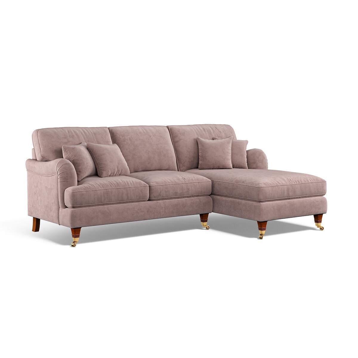 Emeline Velvet Corner Chaise Sofa with Antique Castor Legs (Right Facing)