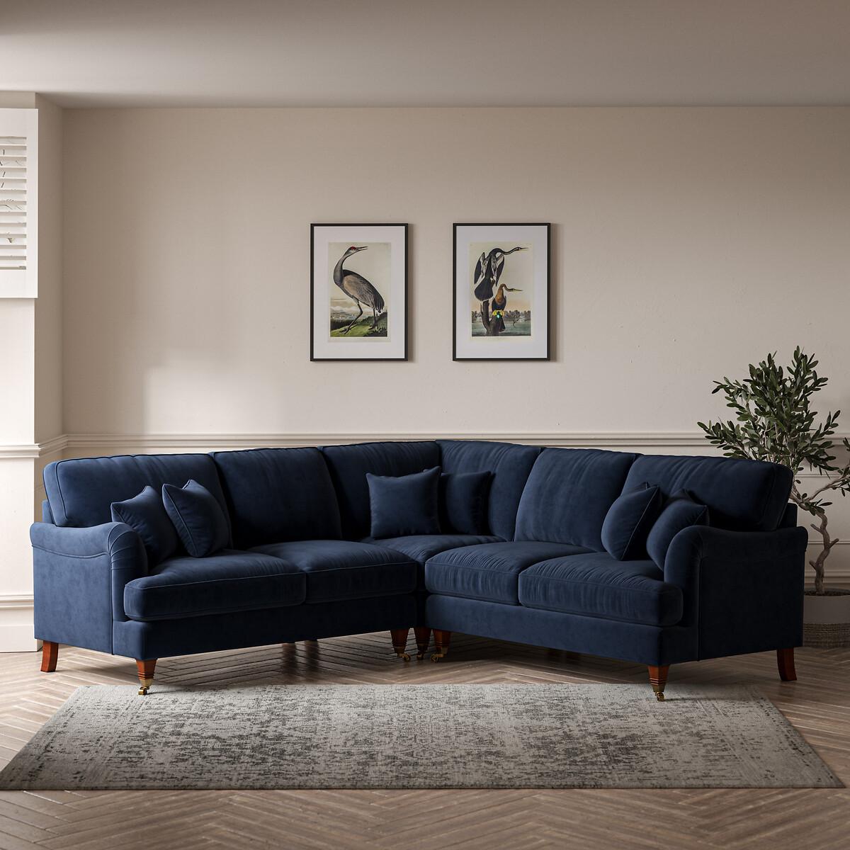 Emeline Velvet Corner Sofa with Castor Legs