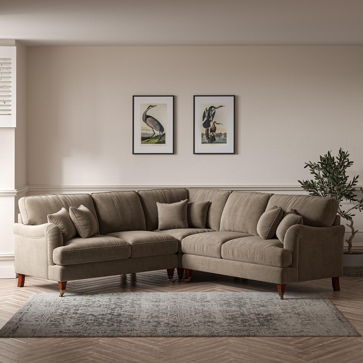 Emeline Velvet Corner Sofa with Castor Legs